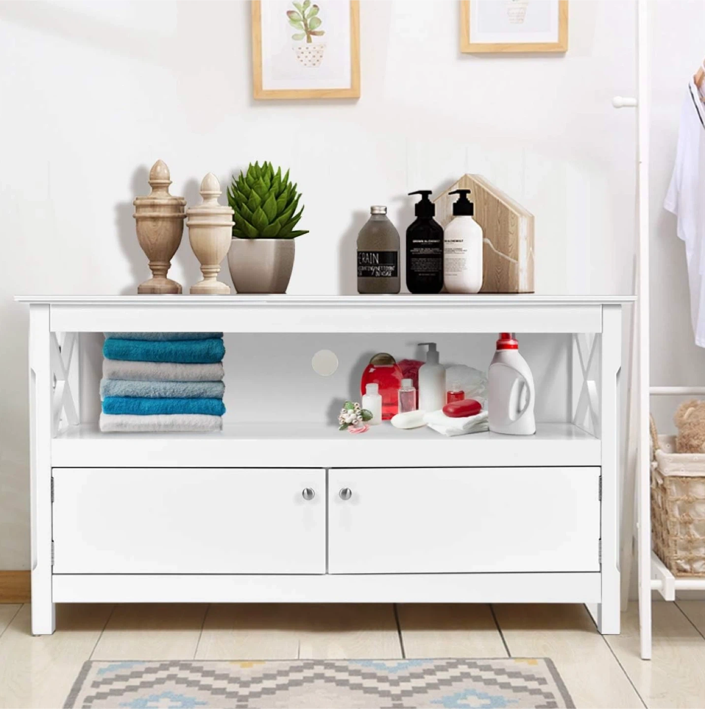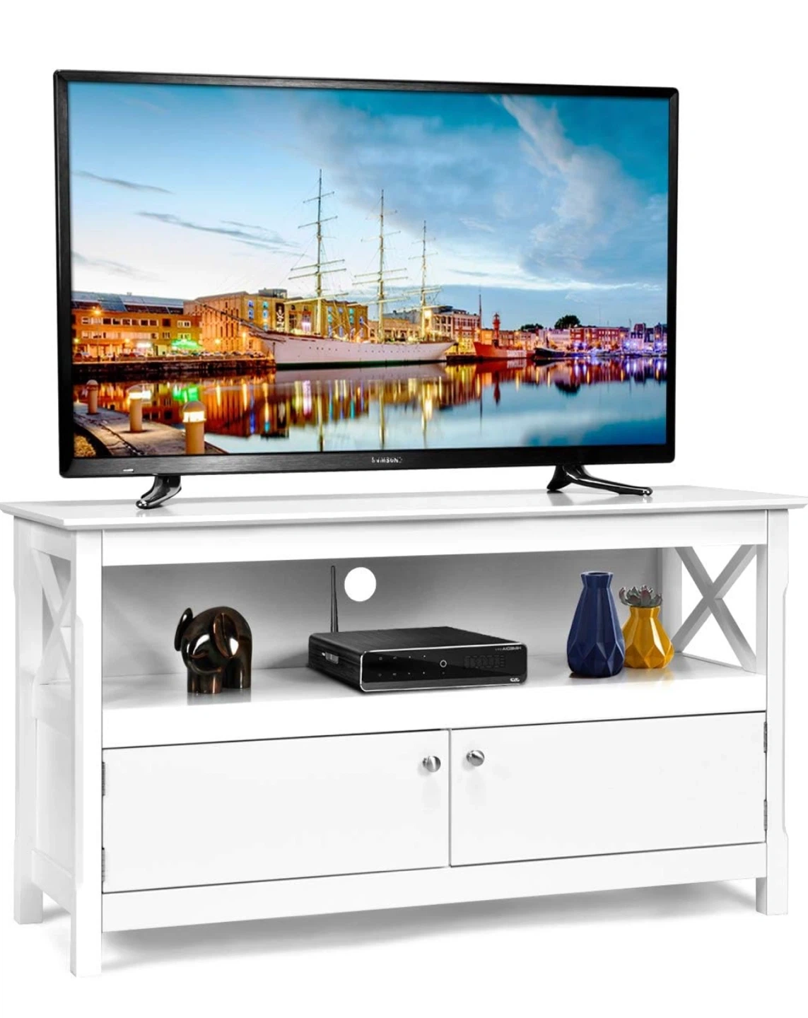 White TV Stand with Storage