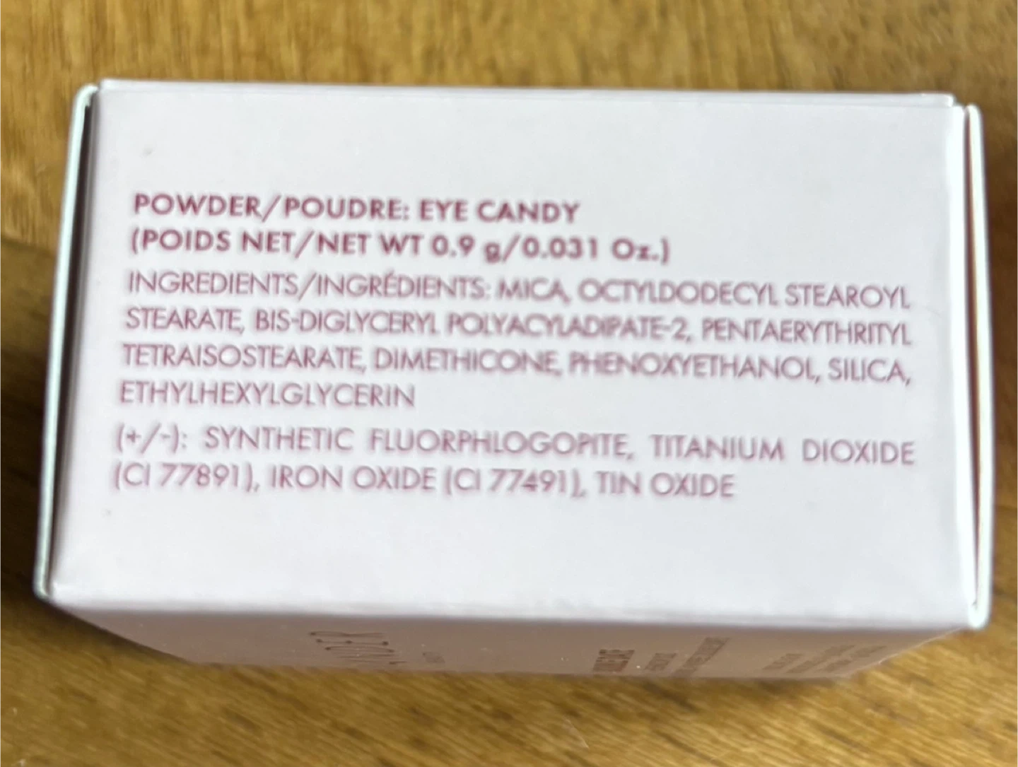 This powder eyeshadow is 0.9g / 0.031 Oz. It's a shimmery, light pink shade. Perfect for adding a pop of color to your makeup look!