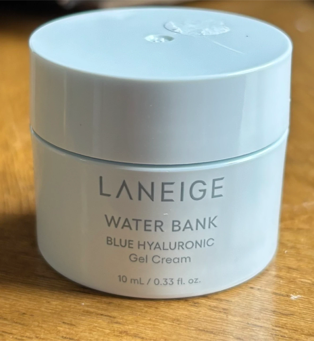 This is a Laneige Water Bank Blue Hyaluronic Gel Cream. It contains 10 ml or 0.33 fl. oz. of product. The expiration date is September 26, 2027.