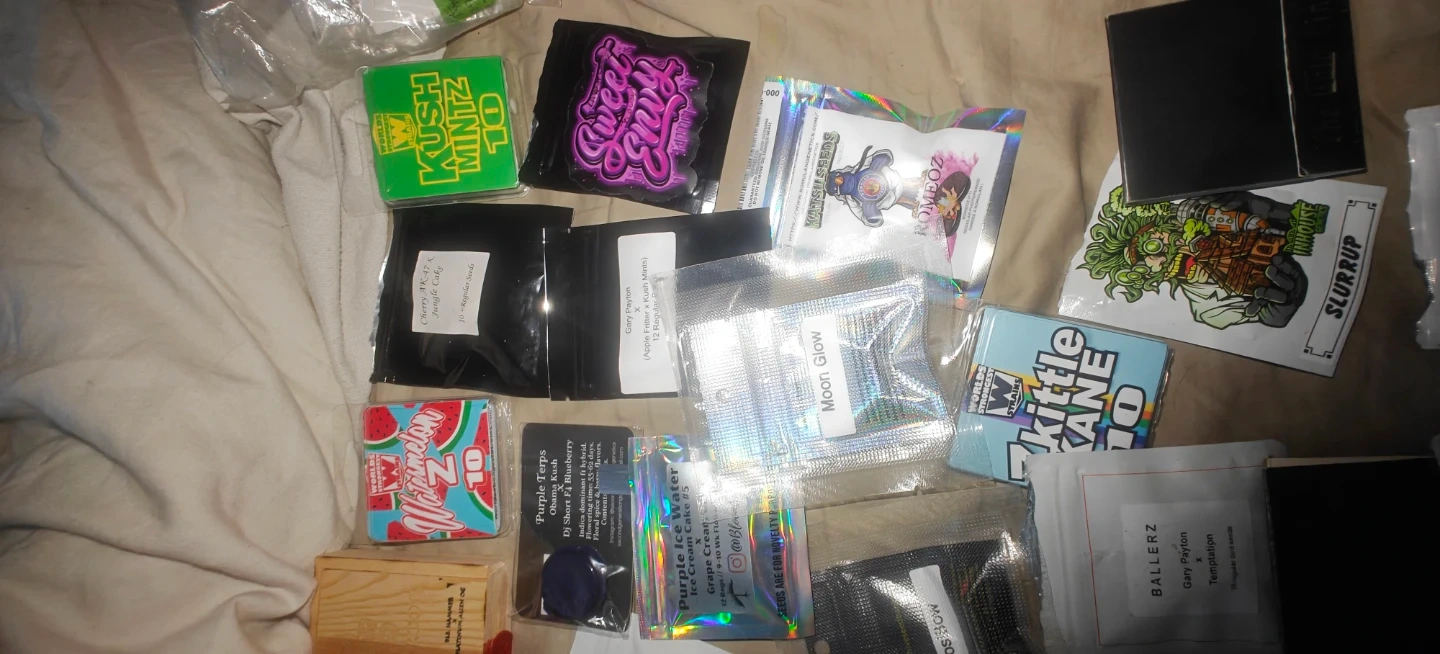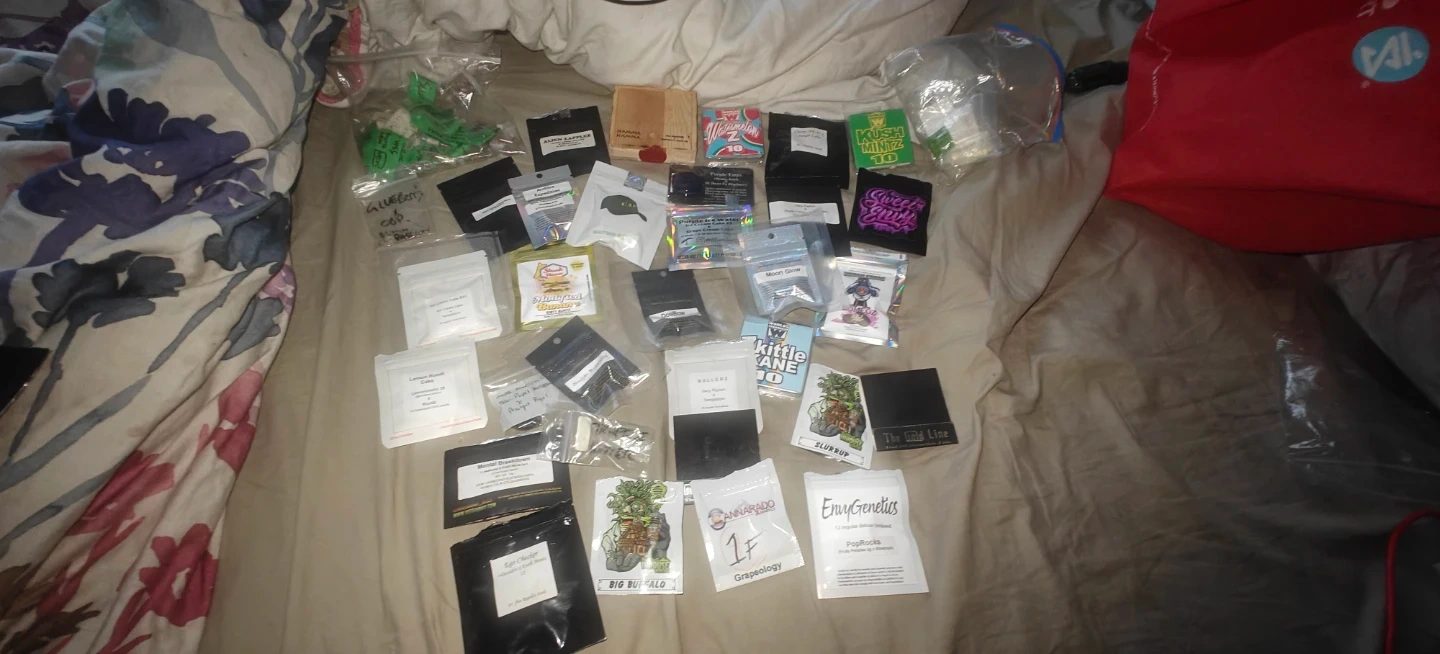 A collection of various seed packets. Includes strains like 'Big Buffalo', 'Gary Payton', and 'Moon Glow'. These are for collection and novelty purposes only. Please follow all your local laws in accordance with the cannabis act.