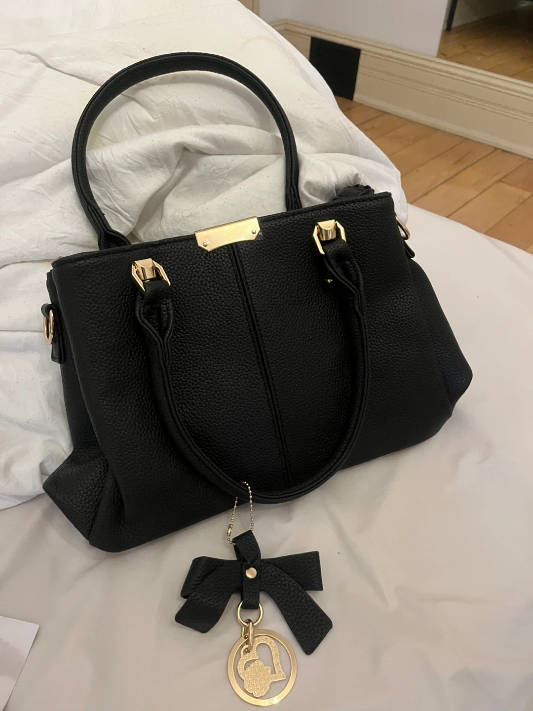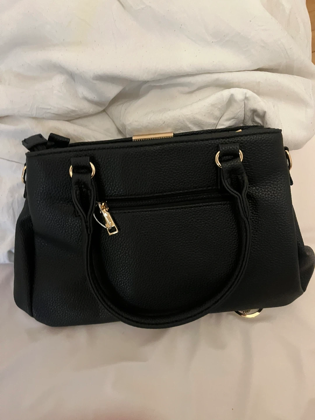 it features a decorative bow charm with a gold-toned heart pendant and a secure zip closure. Plenty of room inside for your essentials! it has three compartments and has never been used! only opened to take pictures! i will give with the original packaging