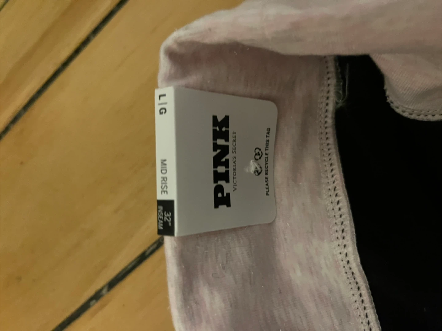 These PINK by Victoria's Secret leggings are made of all-day cotton. They feature a foldover waist and a 4-way stretch fabric for comfort. The inseam is 32 inches, and they are a size large. i got these brand new, not my style or my size. it has tags still on. Price is not negotiable.