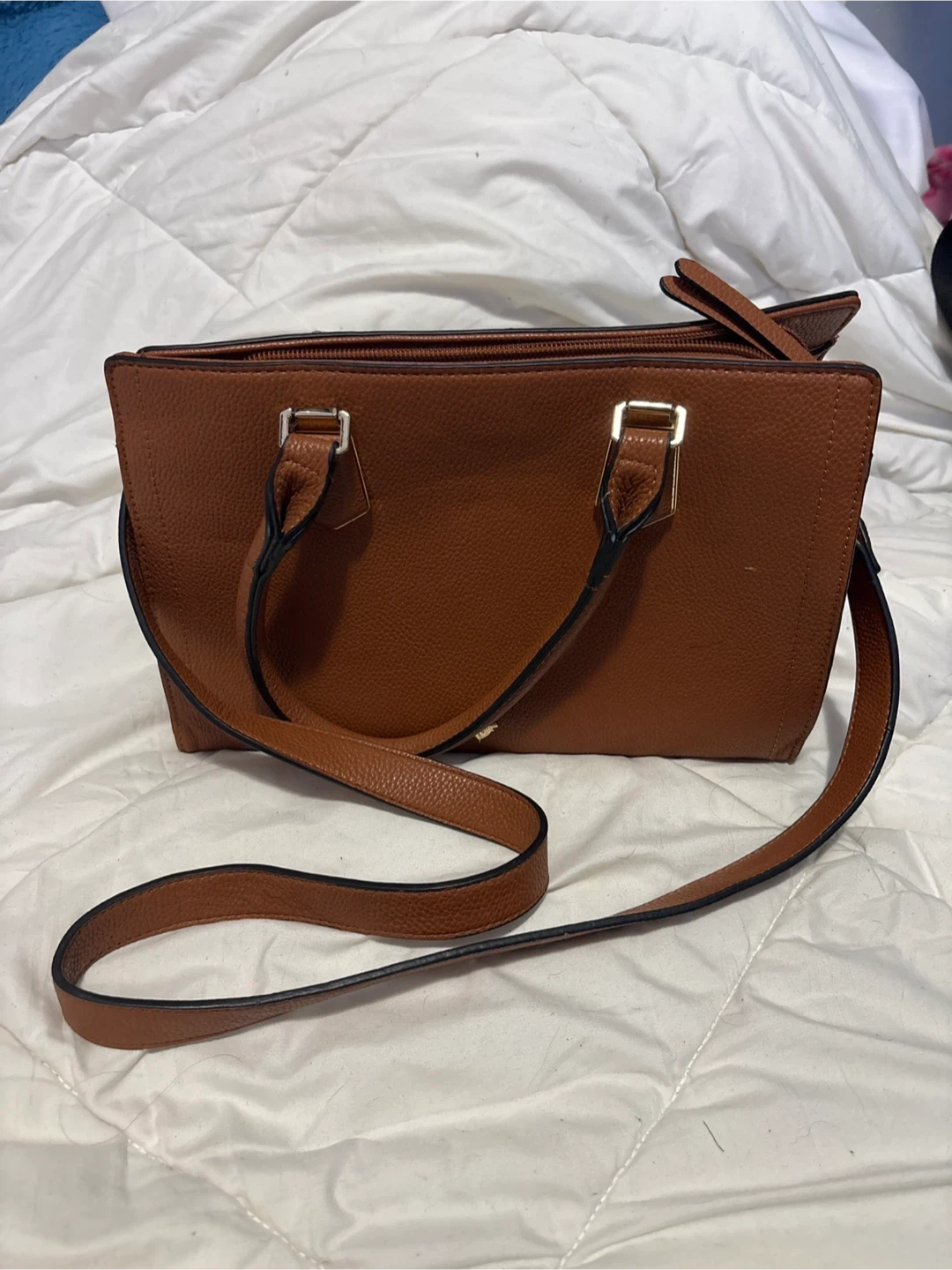 Brown Faux Leather Satchel Handbag