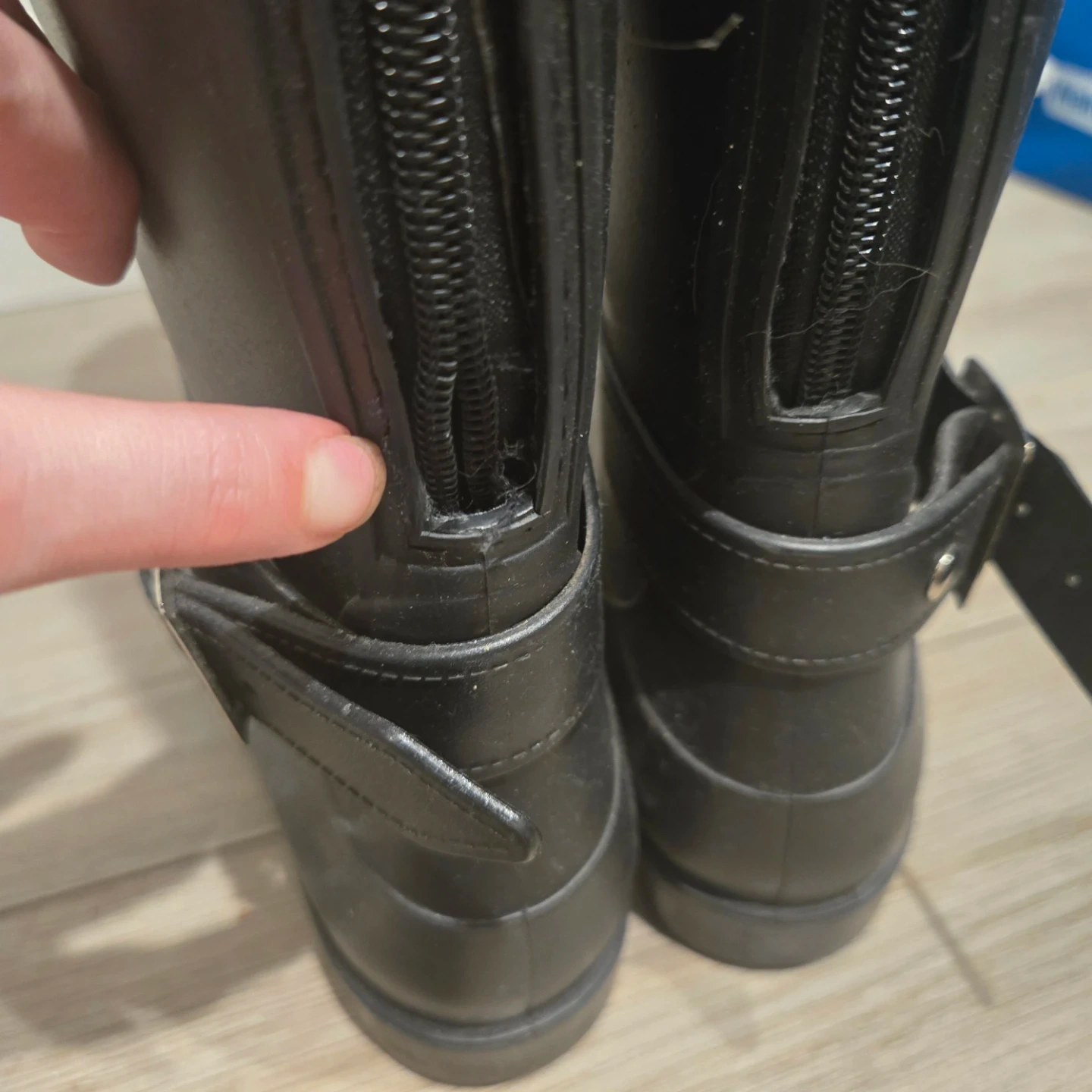 Zipper on the back of the right boot is a little loose.