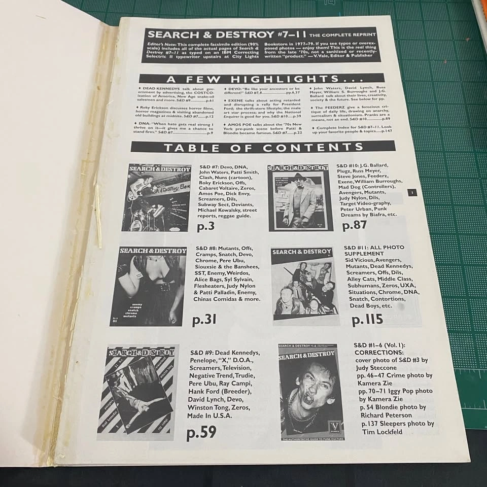 Pickup only from Dupont and Spadina Road. San Francisco based zine collections. Complete reprint of issues 1-6 (148 pages, 1996) and 7-11 (148 pages, 1997). “The authoritative guide to punk culture”. Publisher V Search, V. Vale. 10”x15”. Condition Notes: The Siouxsie Sioux cover is detached partially from the spine. Vol 1 features Cabaret, Voltaire, Blondie, Dead Kennedys, Tom Verlaine, Ramones, DNA, Eno, Weirdos, Exene, Suicide, Iggy Pop, Devo, Buzzcocks, Sham 69, Screamers, Patti Smith, Pere Ubu, The Damned, Dead Boys, The Nuns, Crime, and several Clash articles, plus over 100 photos and cool record ads. #siousxiesoux #talkingheads #devo #theclash #coum #throbbinggristle #coseyfannitutti #deaboys #sydvicious #sexpistols #screamers #theramones #crime #crisis #research #sanfrancisco #largeformat #vvale #Vsearch #70spunk #punk #punkzines #zinesforsale #rarebooks #collectiblebooks