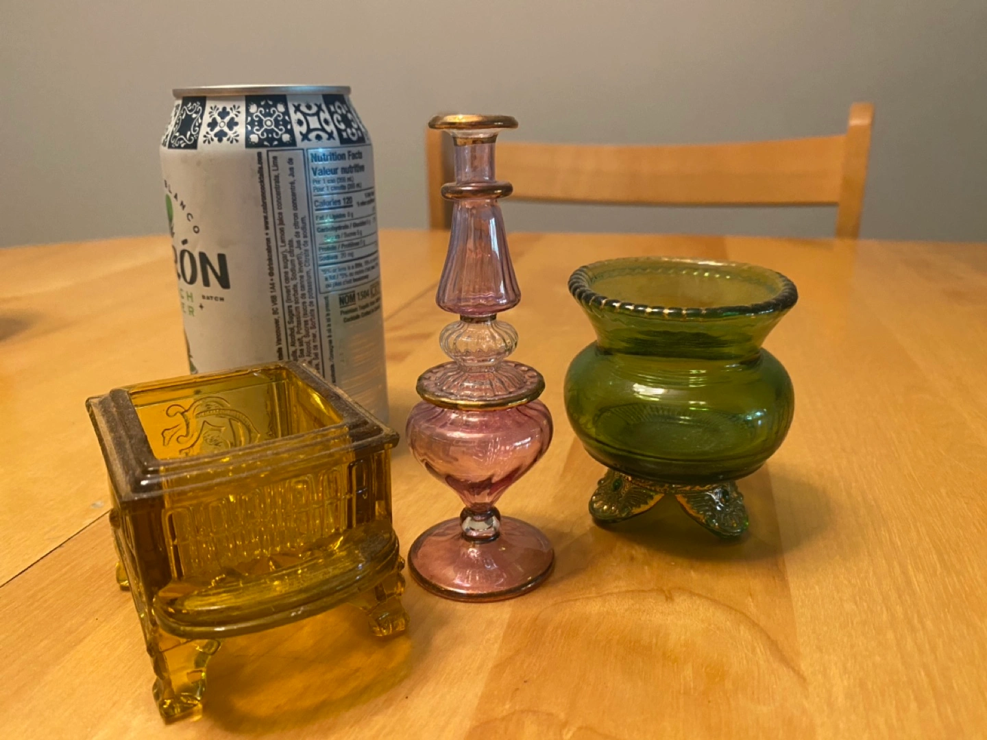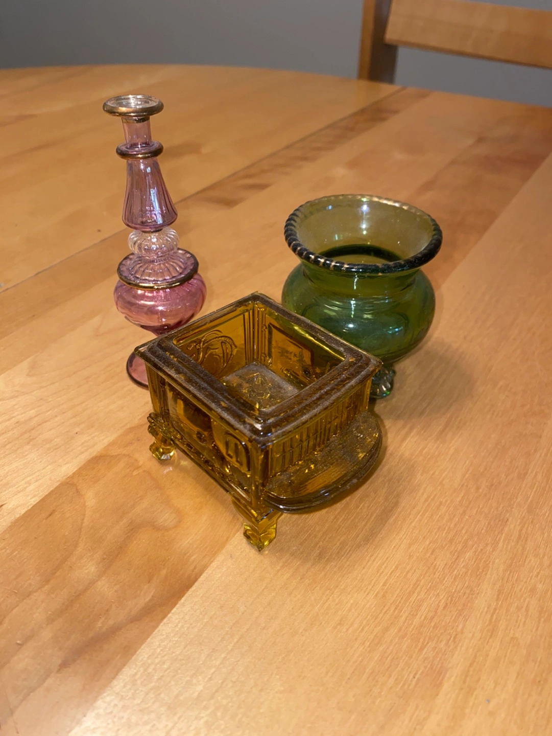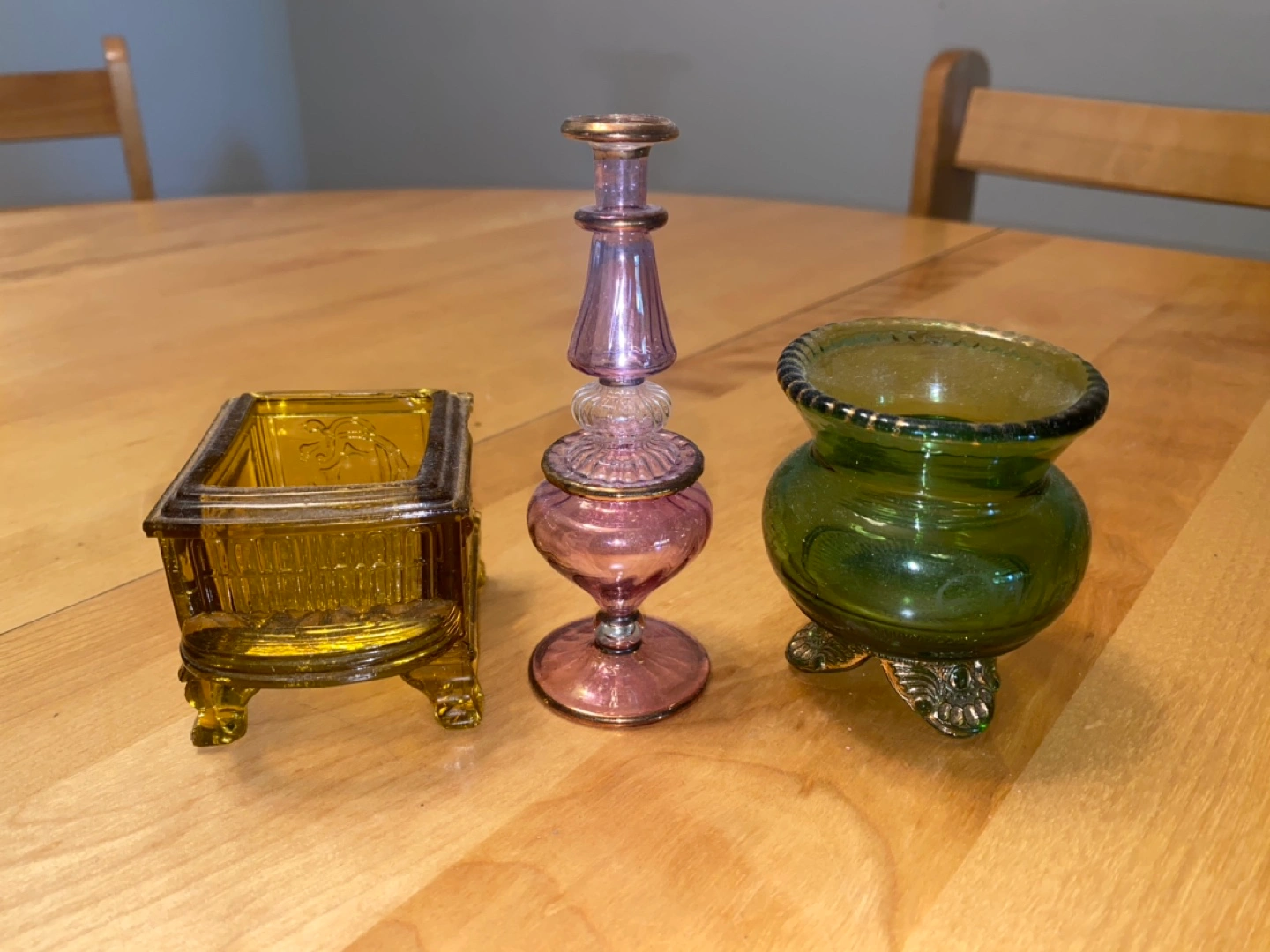 Take all 3 for $5. The pink vase is cute for a small single stem flower.