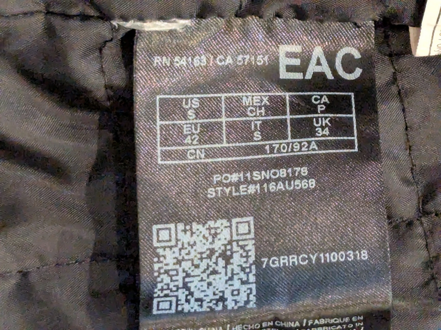 Black faux leather moto jacket by GUESS. It's a size small with a zip-up front and multiple zippered pockets. This jacket offers a stylish look.