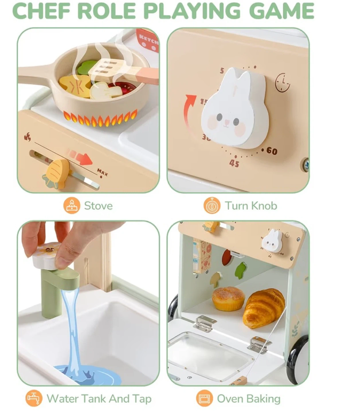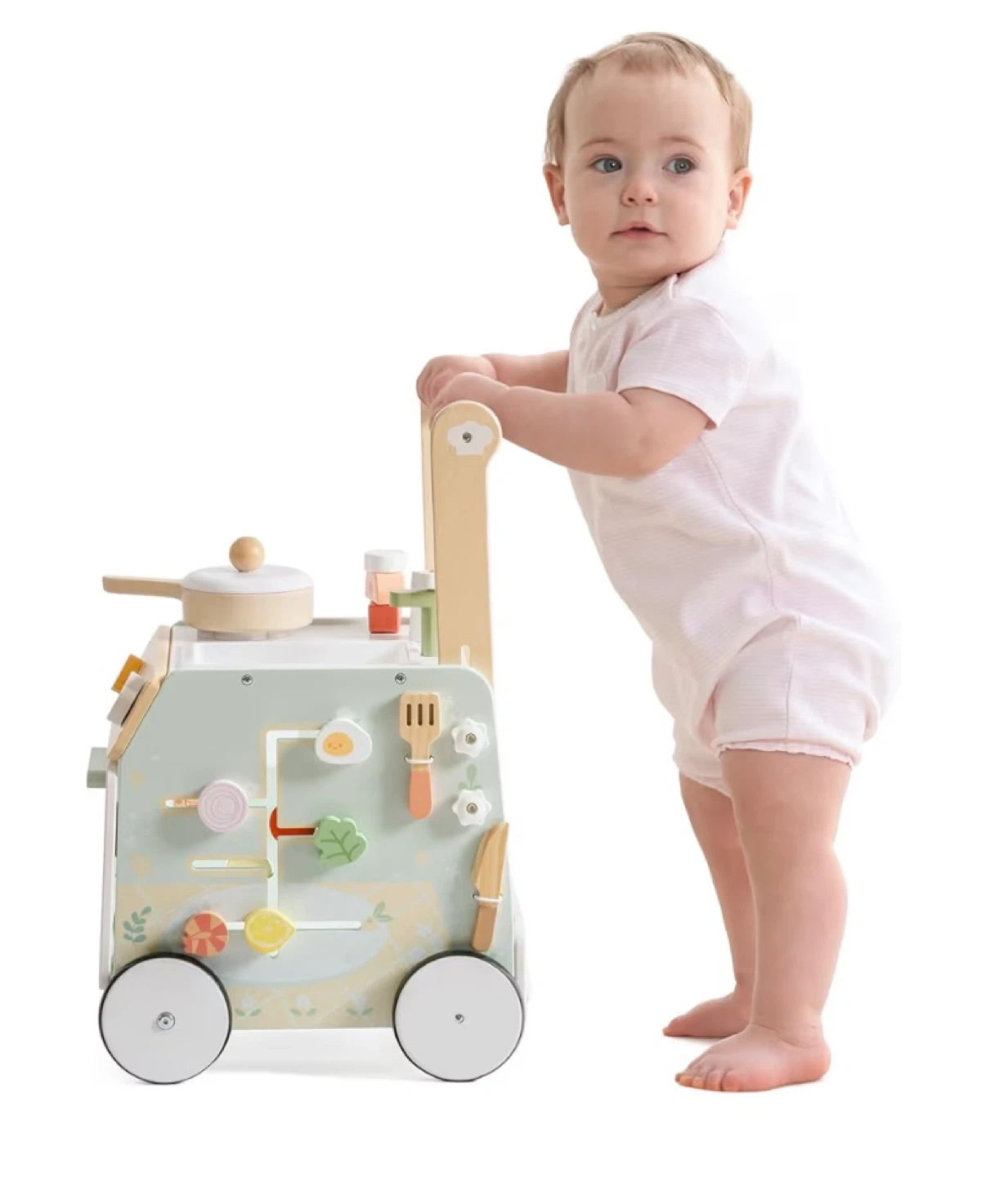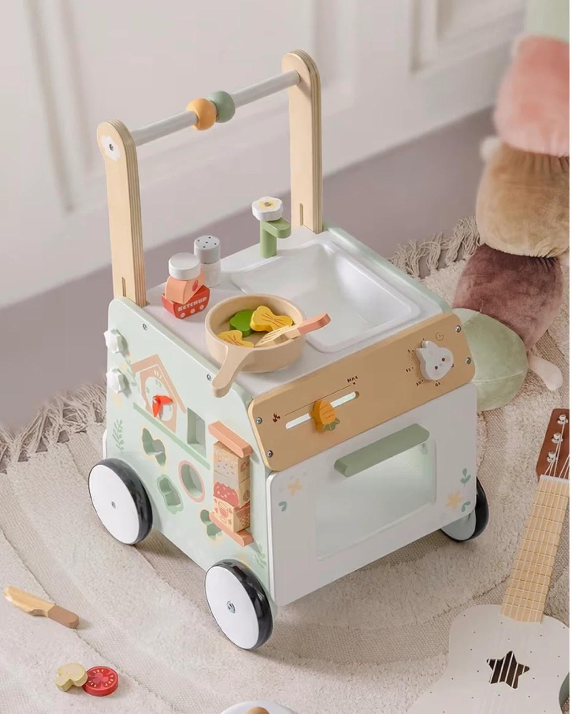 This wooden play kitchen walker is designed for little ones to explore. It's height adjustable for growing children. Includes various play accessories and interactive elements. Cash only, no e-transfers. Pick up only.