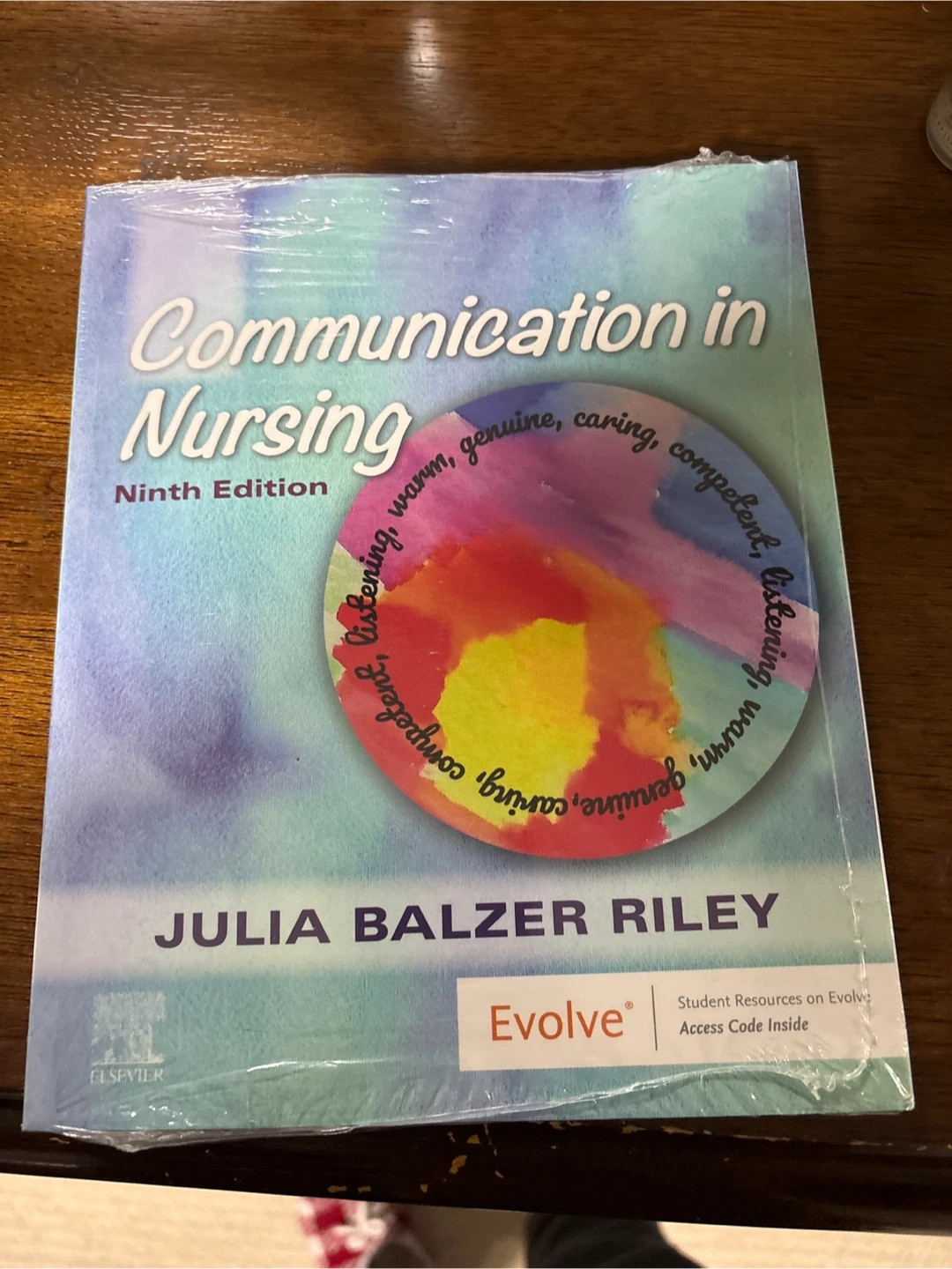 This is the Ninth Edition of Communication in Nursing by Julia Balzer Riley. It includes student resources and an access code for Evolve. This textbook is sealed in plastic wrap. There are many books to be sold. U can contact me by phone at 604-751-6579