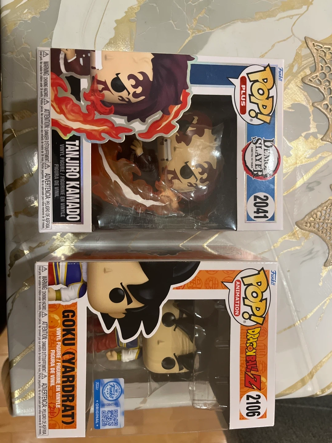 Includes Funko Pop! figures of Tanjiro Kamado (#2041) from Demon Slayer and Goku (#2106) from Dragon Ball Z. Both are vinyl figures in original packaging. Great collectibles for anime fans!