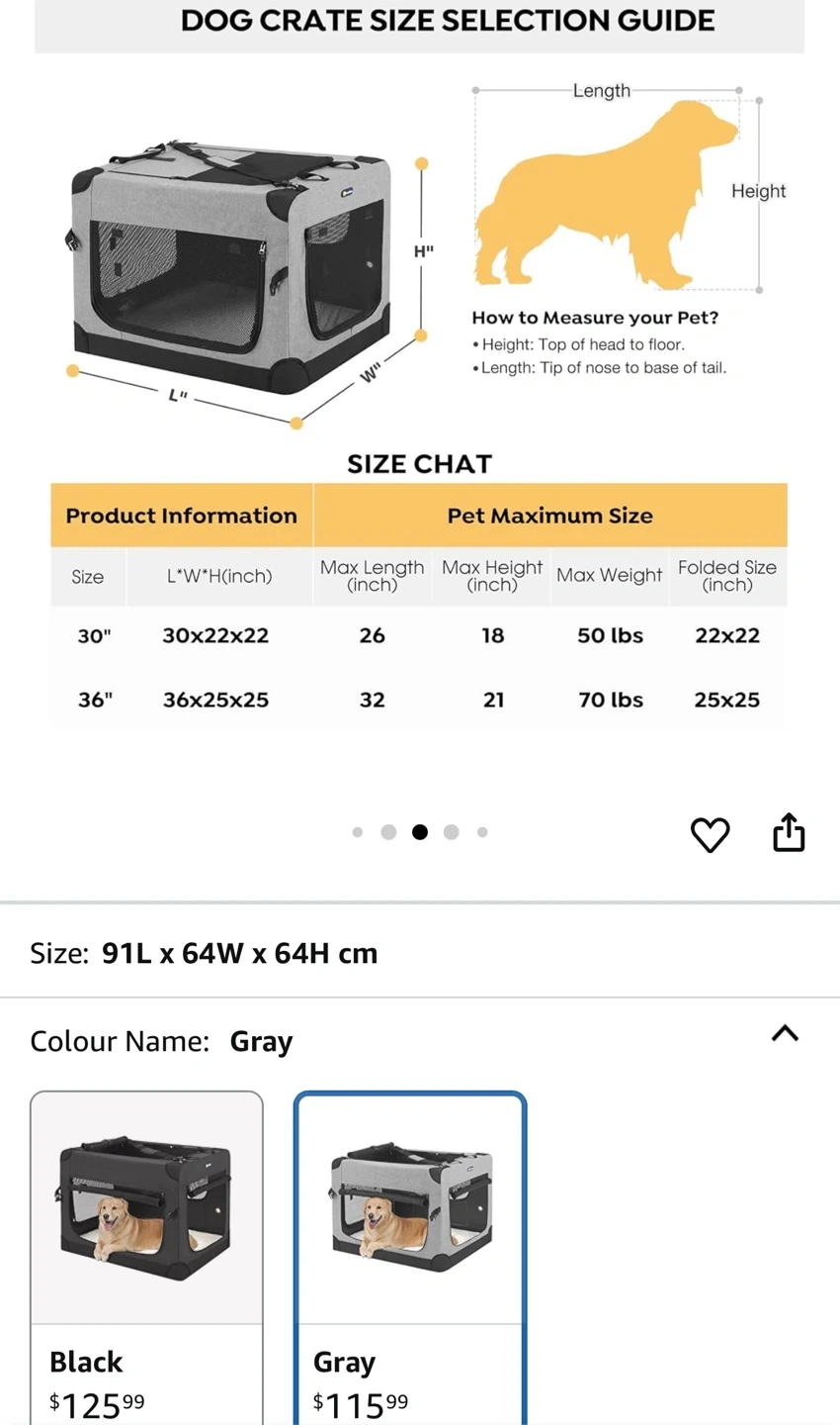 This Veehoo dog crate is gray. It's made with waterproof Oxford fabric and features a non-slip soft pad, solid steel frame, and convenient carrying handles. This crate is useful for safely transporting or housing pets.
