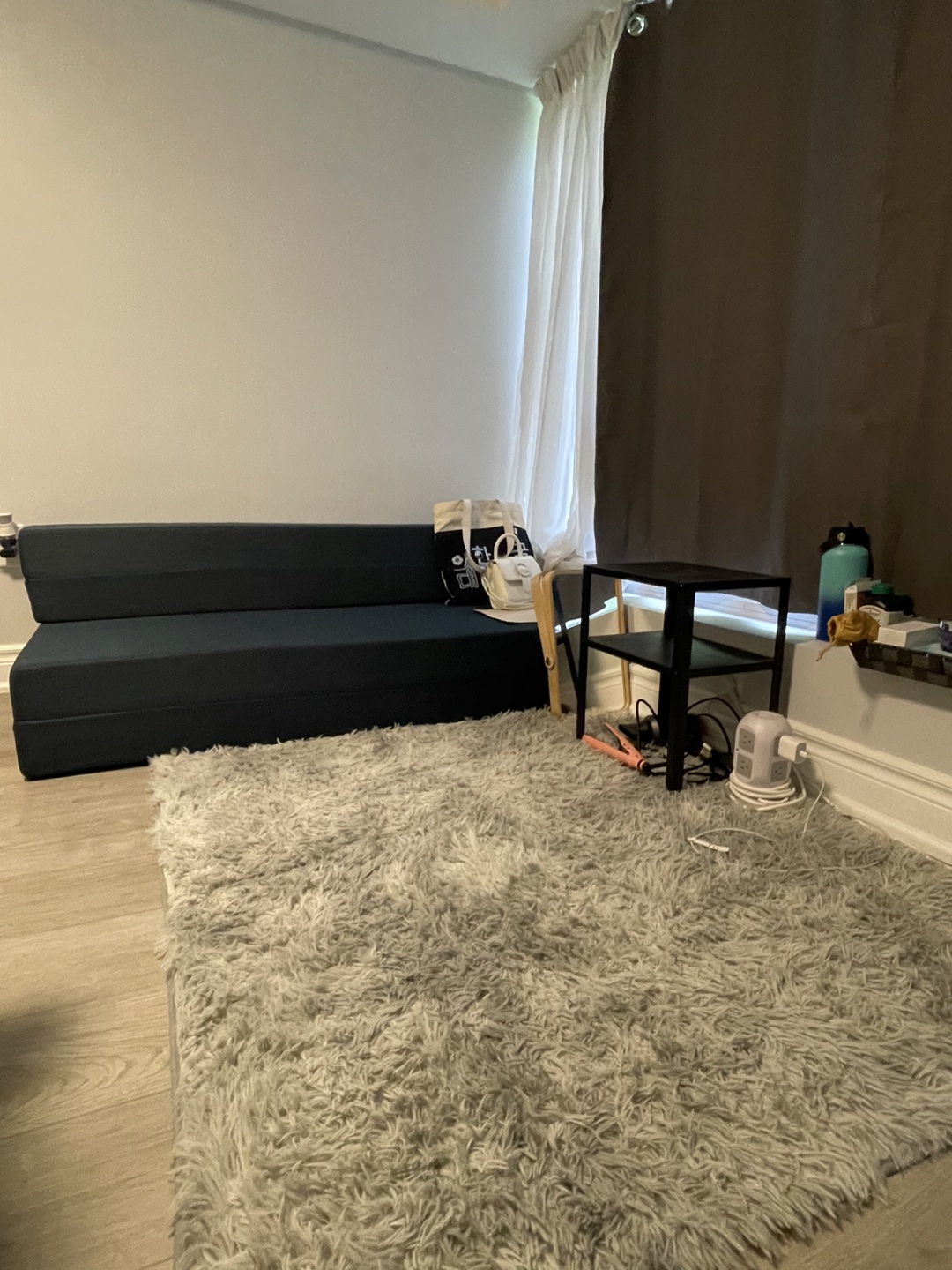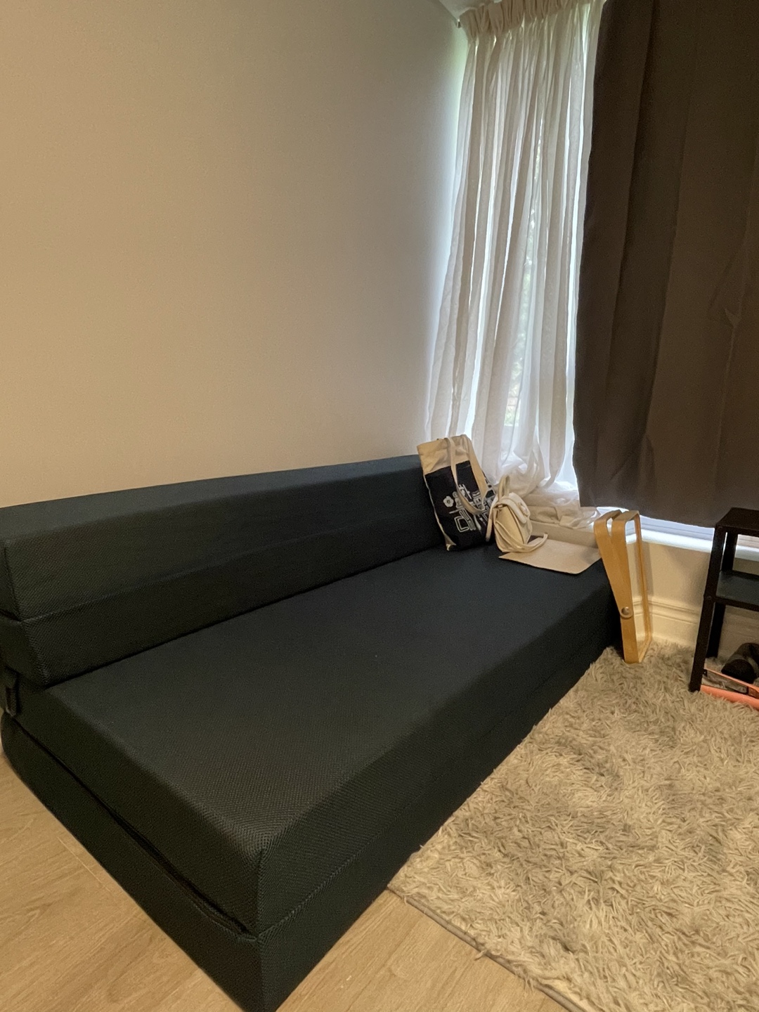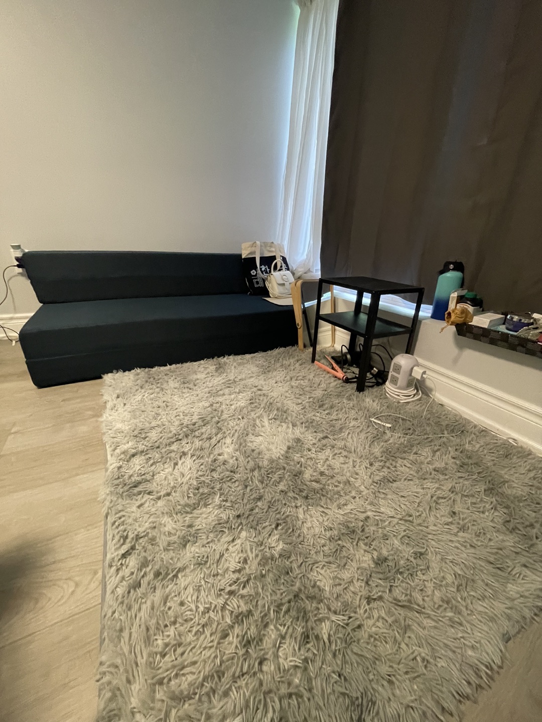 Milliard Tri-Fold Foam Folding Mattress and Sofa Bed - Queen size Shuggy Floor Mat (Grey White) 3.9 ' * 6.5' (120 * 200cm) Small ikea side table (black) for pick up only ASAP!!