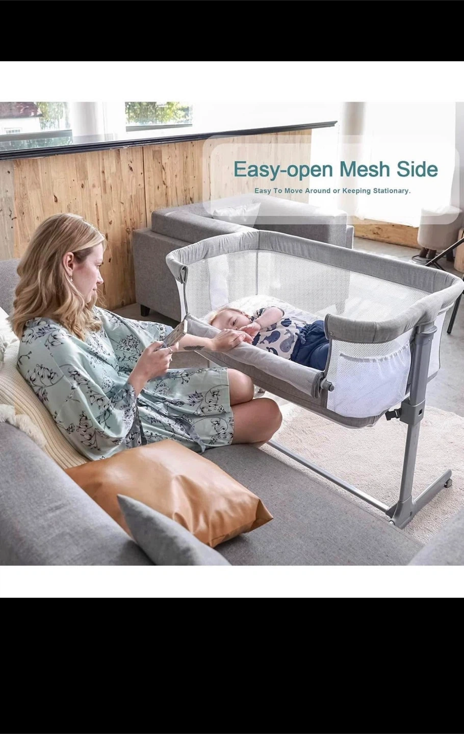 SAFELY BY YOUR SIDE: Our bedside sleeper has a detachable sidebar that can easily attach to the parent's bed. It's very convenient to take care of the baby and have parent-child interaction at night.