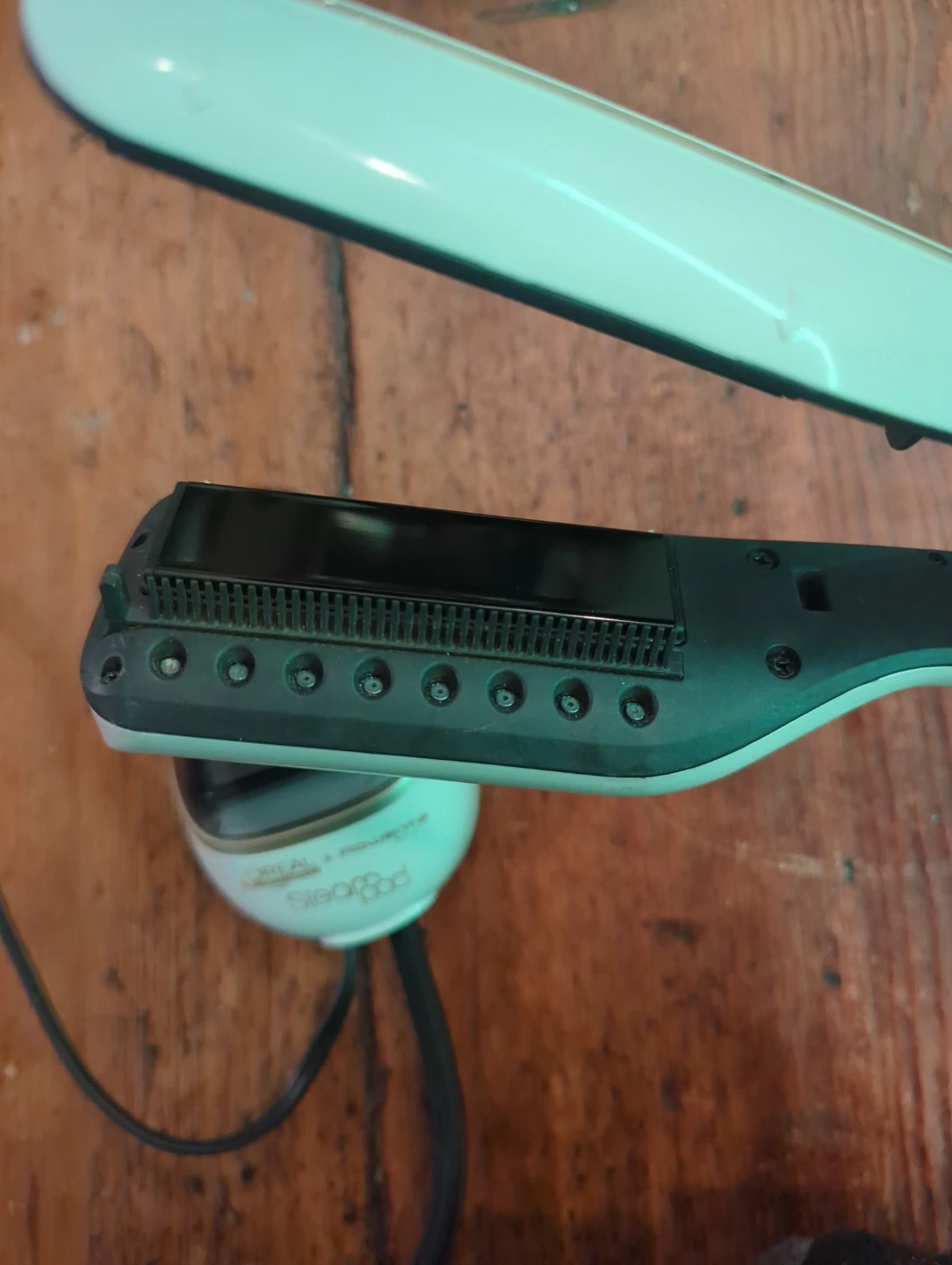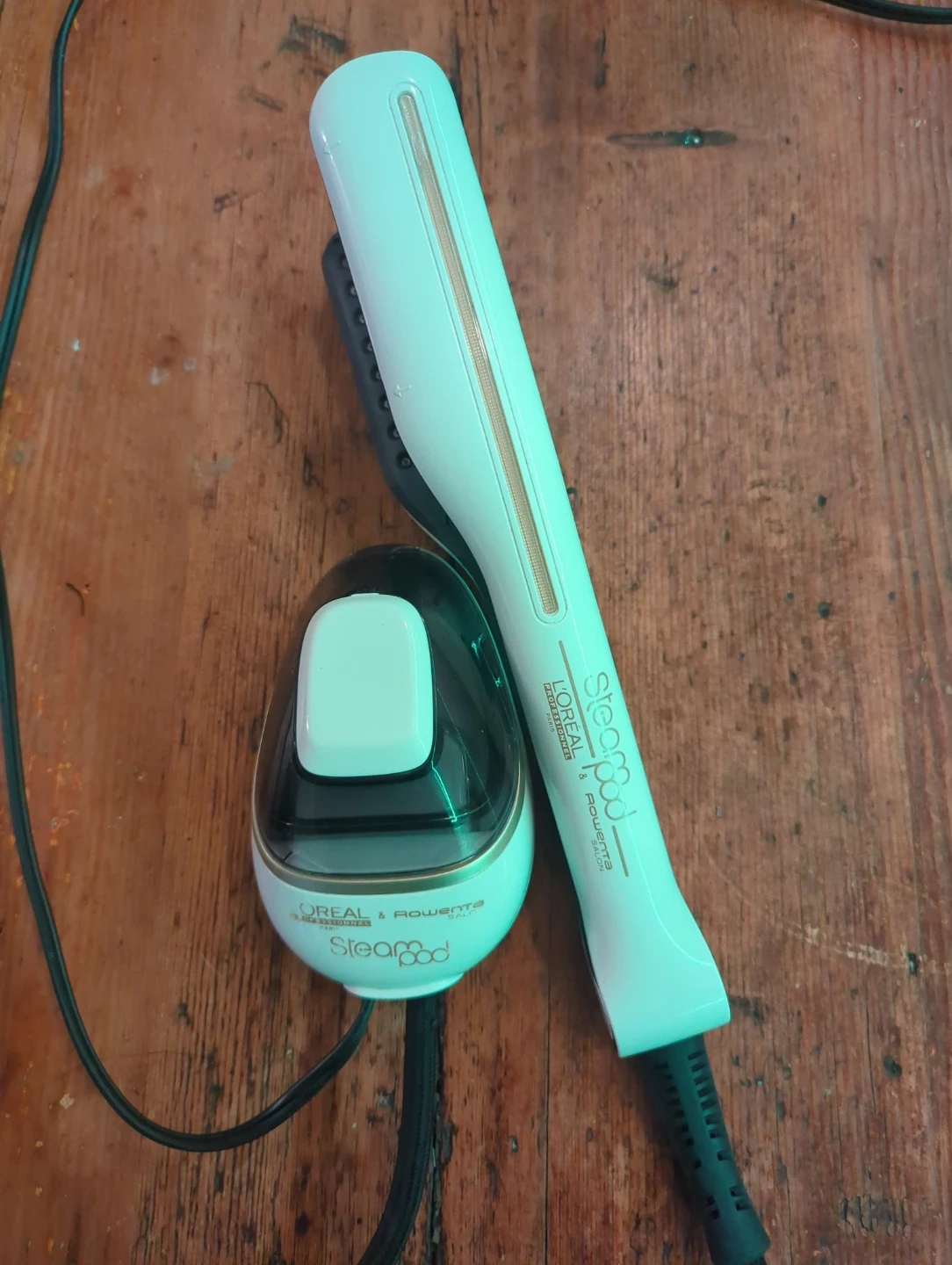 This is a L'Oréal Professionnel SteamPod hair straightener. It uses steam technology for hair styling. It's designed for professional salon use.