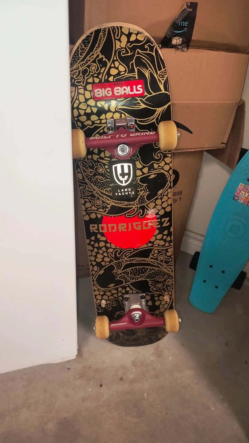 Paul Rodriguez skateboard deck featuring the classic "Big Balls" graphic. Setup is used with some wear. Independent trucks and reds, brand new. Originally from Zumiez.