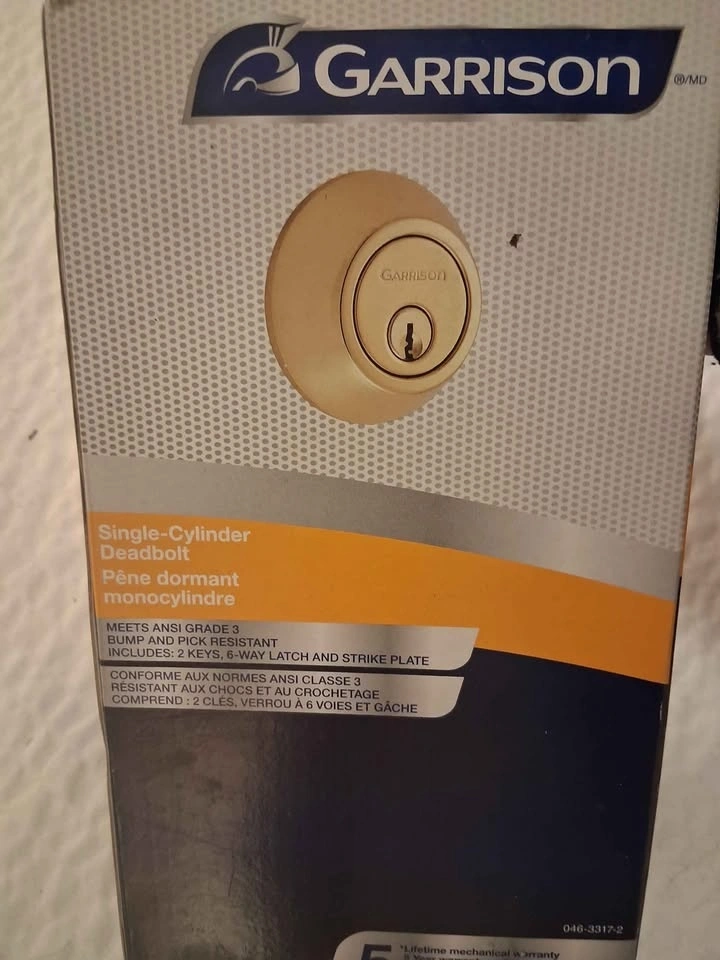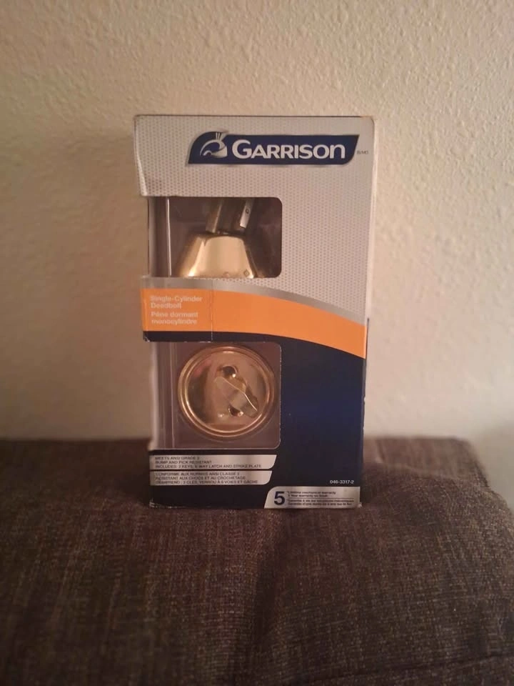 Secure your home with these brand-new Garrison Single-Cylinder Deadbolts. These are high-security locks designed for durability and ease of installation. They feature a polished brass finish and are engineered to meet strict safety standards. Meets ANSI Grade 3 standards for residential security. Specially designed to be both bump and pick resistant. Each box includes 2 keys, a 6-way adjustable latch, and the strike plate. Features a lifetime mechanical warranty and a 5-year warranty on the finish. These are reliable, professional-grade deadbolts perfect for a home upgrade or a rental property. Pick Up: Victoria.