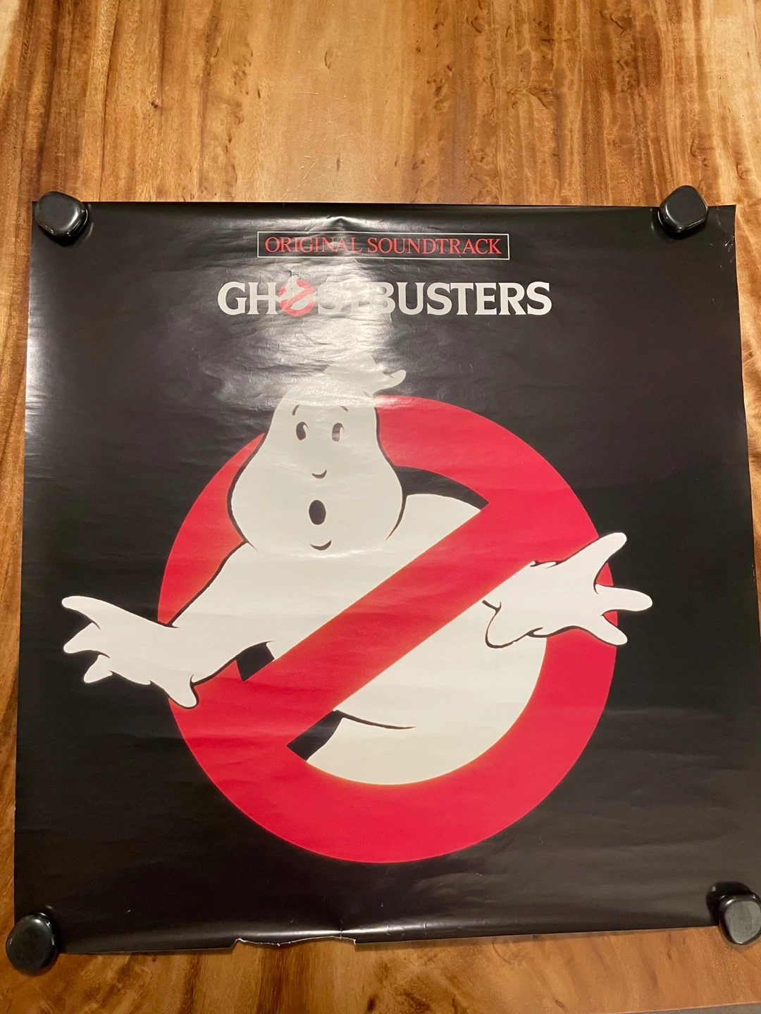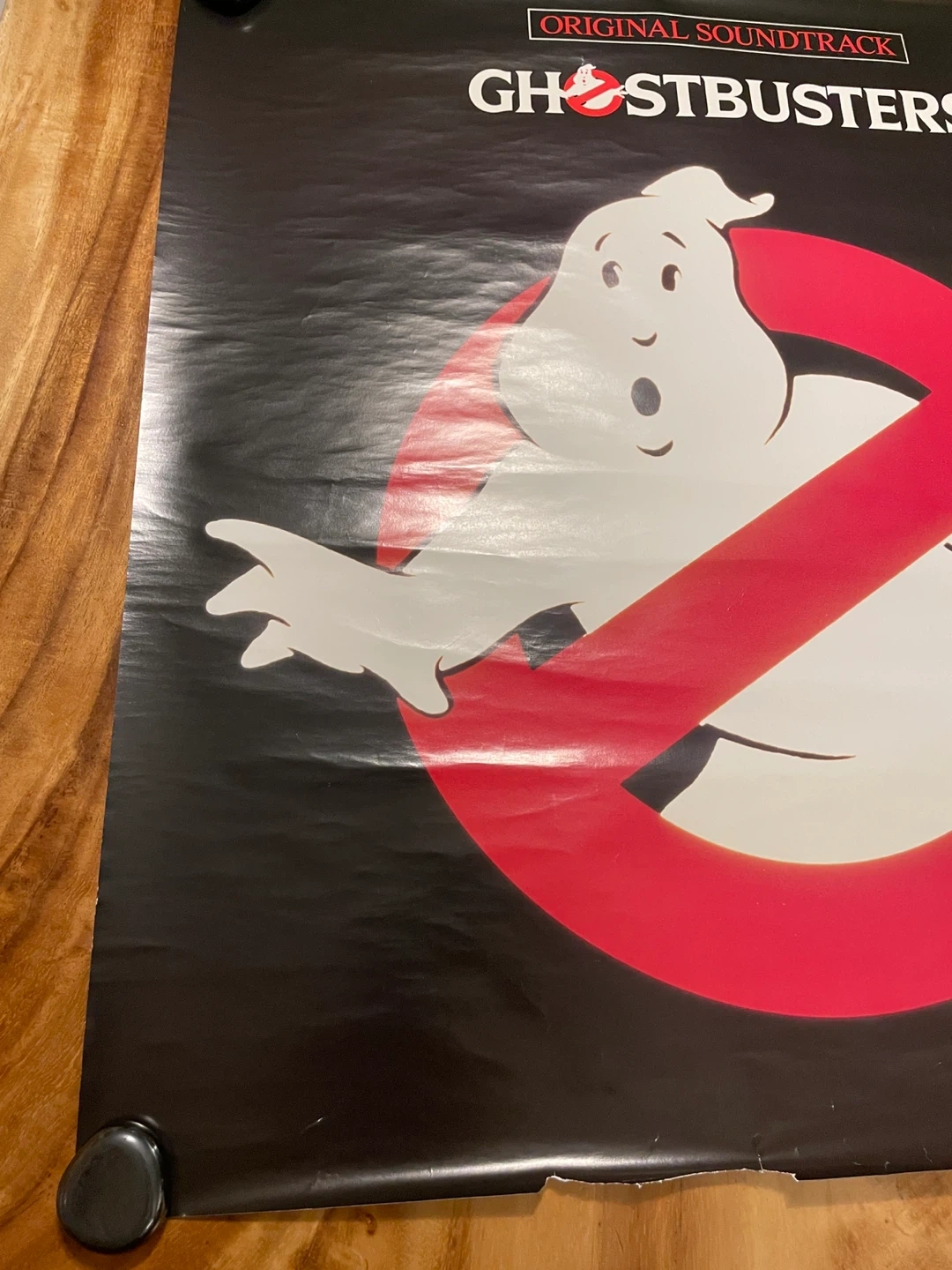 This is a Ghostbusters original soundtrack poster. It features the iconic Ghostbusters logo and Slimer. Great for any fan of the classic movie! This is an original that was sent to music stores to promote the soundtrack in 1984. 24” x 24”.