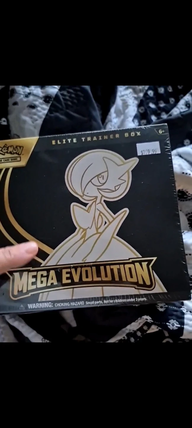 This Pokémon TCG: Mega Evolution Elite Trainer Box includes: 9 Pokémon TCG: Mega Evolution booster packs, 1 full-art foil promo card of Alakazam, 65 card sleeves featuring Mega Gardevoir, 40 basic Pokémon TCG Energy cards, 6 damage-counter dice, 1 competition-legal coin-flip die, 1 plastic coin, a player's guide to the expansion, a collector's box with 6 dividers, and 1 code card for the Pokémon Trading Card Game Live. Let me know if you're interested!