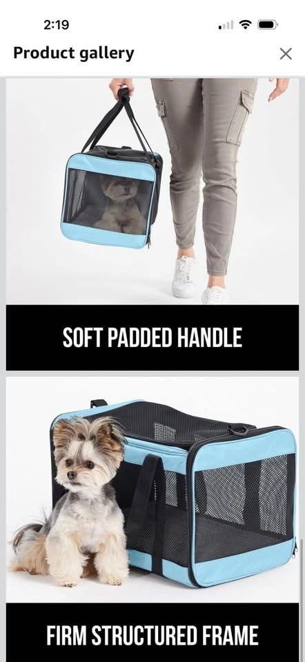 Brand new, still sealed! Medium size. Durable yet lightweight travel bag designed for convenient traveling with pets. Features two openings (top and side) for easy entry and exit, and a sturdy structured frame. Breathable mesh windows offer ventilation and visibility, and are scratch-resistant. Lightweight with padded handles and an adjustable strap for comfortable carrying. Includes a side pocket for travel documents and accessories, and a luggage band to attach to suitcases. Waterproof bottom with a removable and washable fleece pad insert. Measures 17x11x11 inches and supports pets up to 15 pounds. Compact size fits most planes, but please check with your airline to ensure it meets their specific requirements before travel.