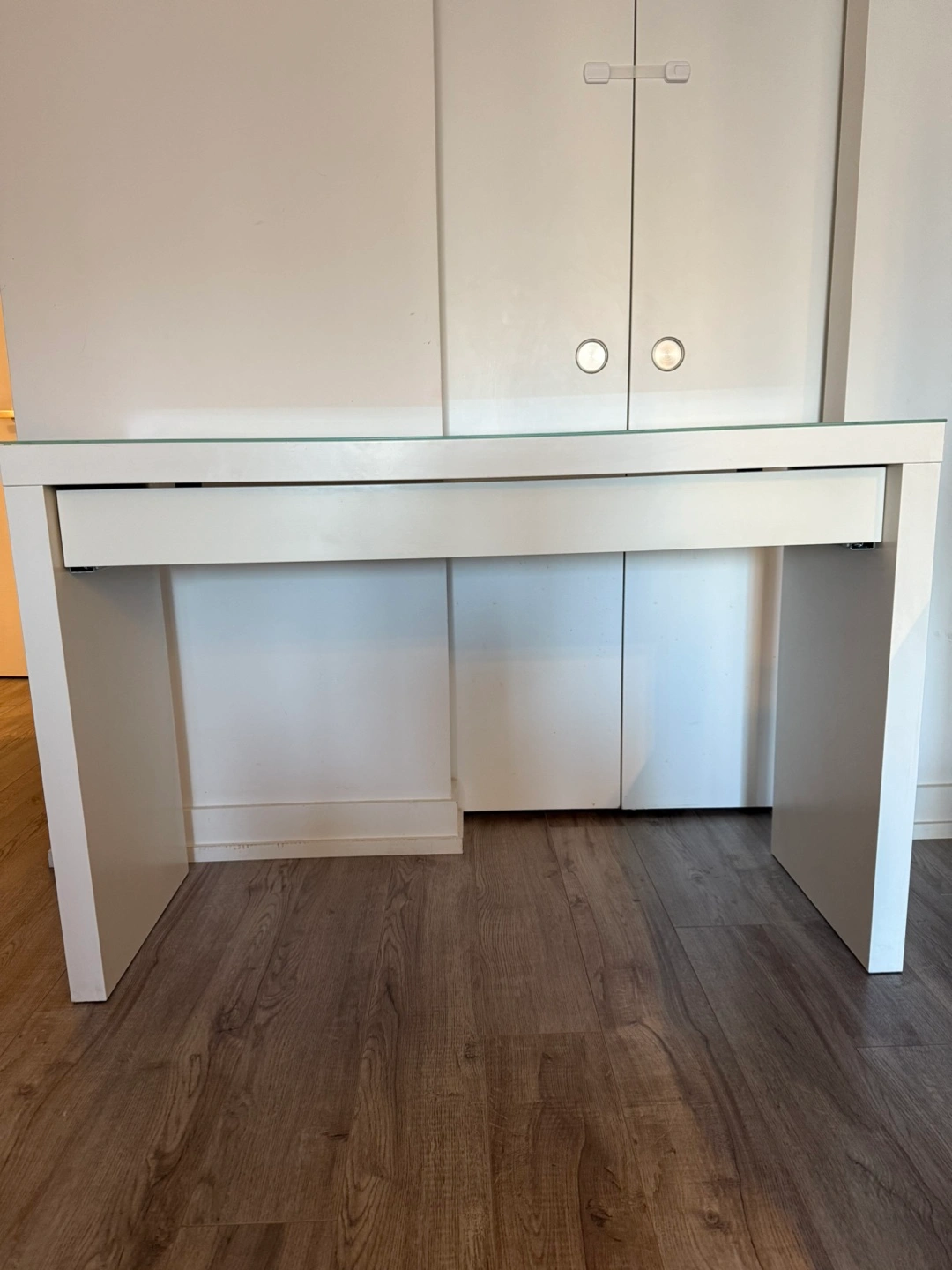 IKEA malm vanity table, it’s still good to use, a scratch in the back from movers and not noticeable at all since it’s against the wall. Drawers are clean. Glass top as well. Pick up by the Eaton Center at my condo. $20.