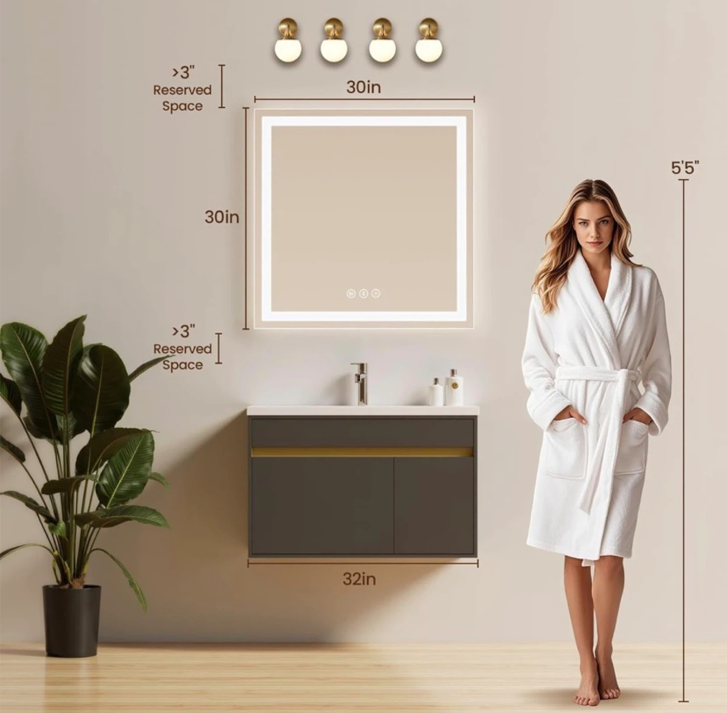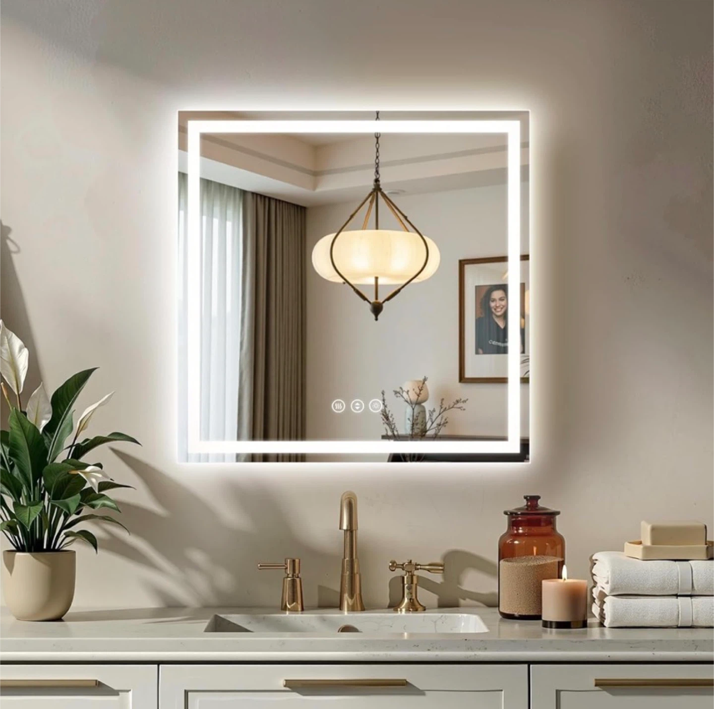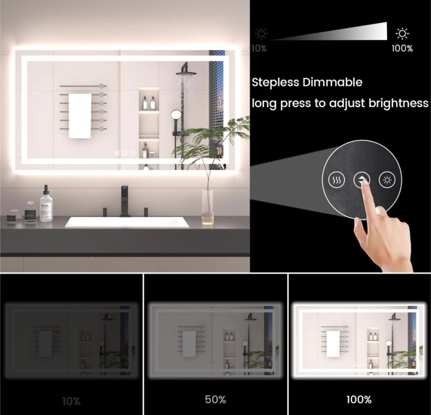 30"x30" LED Bathroom Mirror Stepless Dimmable