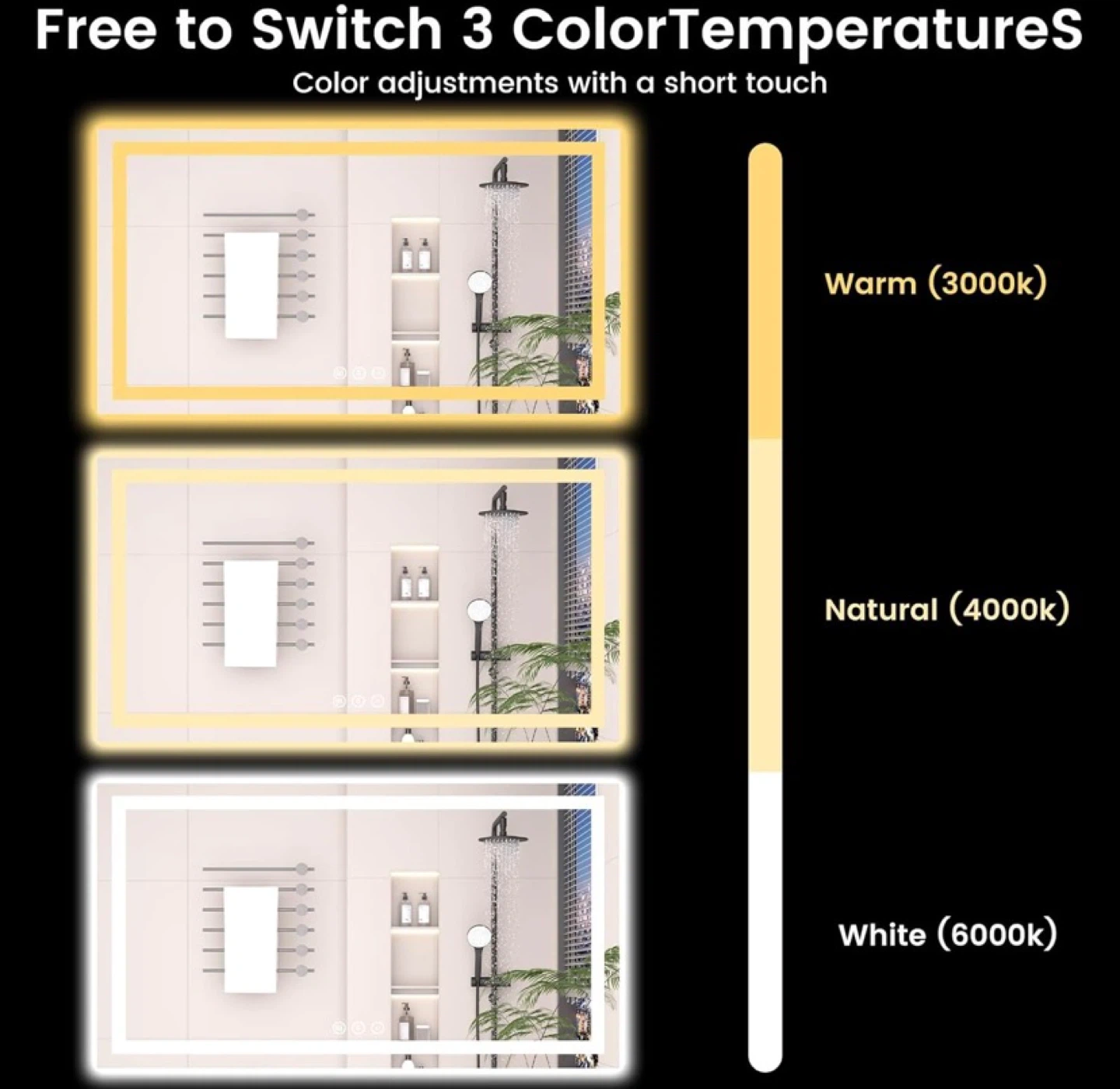 30"x30"Rectangle LED Bathroom Mirror with Lights, 3 Color, Anti-Fog, Frameless Wall-Mounted Mirror with Backlit + Front Lit, Stepless Dimmable