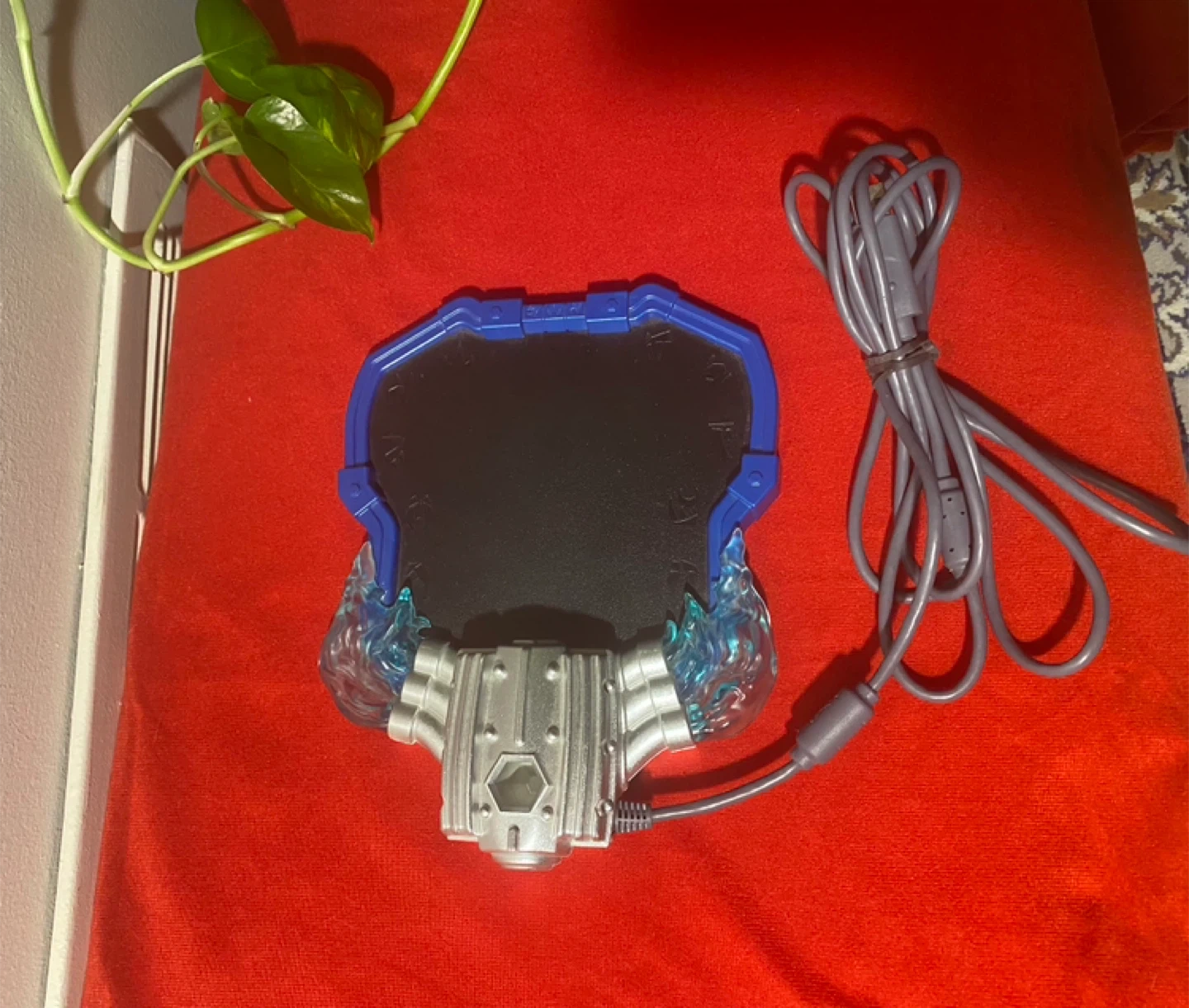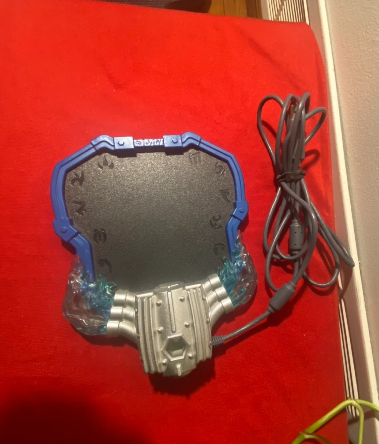 This is an Activision Portal of Power for the Xbox 360, compatible with Skylanders games. It includes the portal and its connecting cable. It's powered by DC 5V and draws 120mA. Made in China.