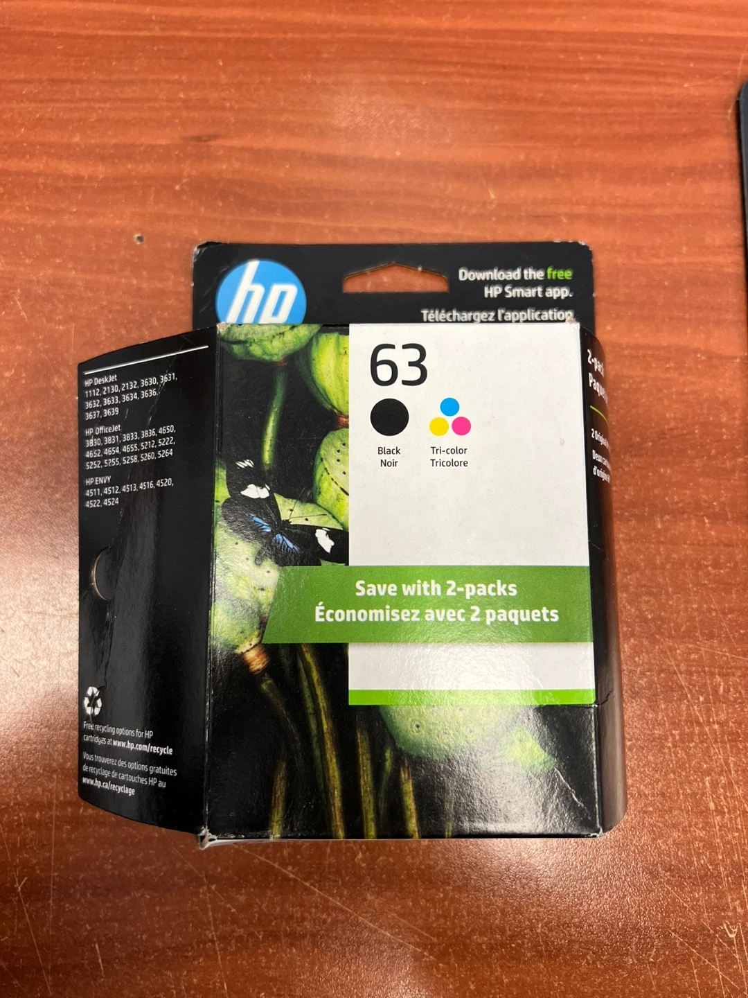 This is an HP 63 combo pack featuring one black ink cartridge and one tri-color ink cartridge. These cartridges are compatible with various HP DeskJet, OfficeJet, and ENVY printer models. Ensure your printer is listed for compatibility.