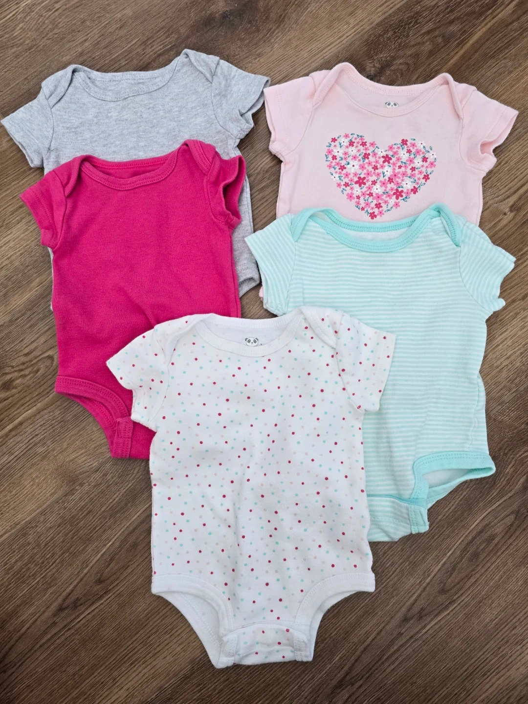 This is a bundle of baby girl clothes that are perfect for the upcoming spring and summer seasons. You'll find a dress, dressy shirts, onesies, a cardigan and headband. Brands include Carter's and Rococo.