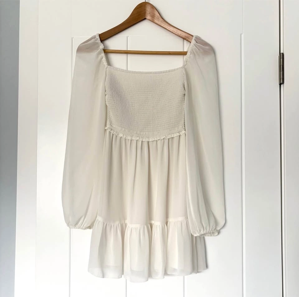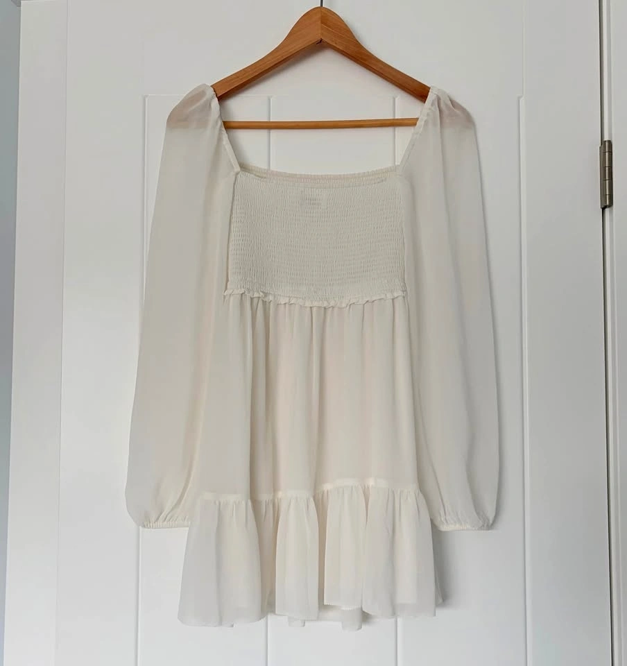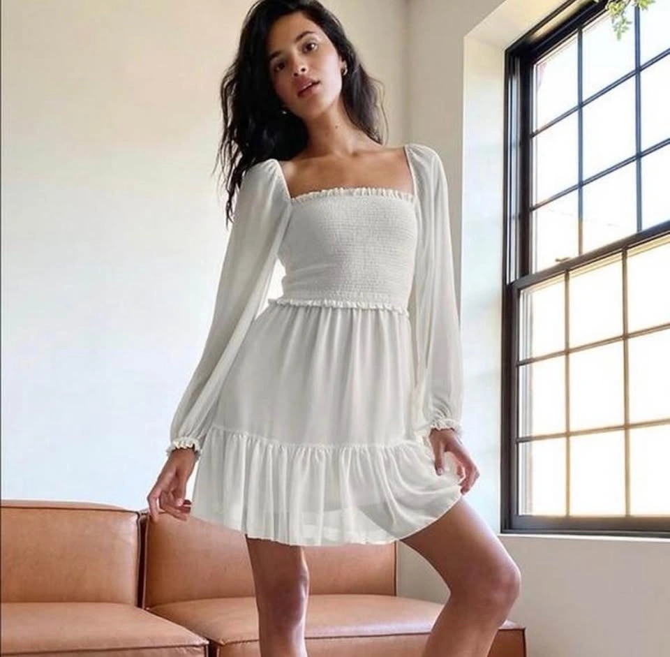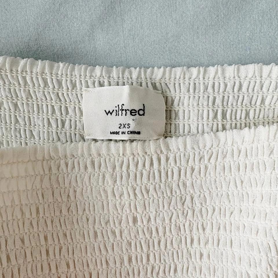 Aritzia Wilfred Tempest XXS Mini Dress Smocked White Chiffon