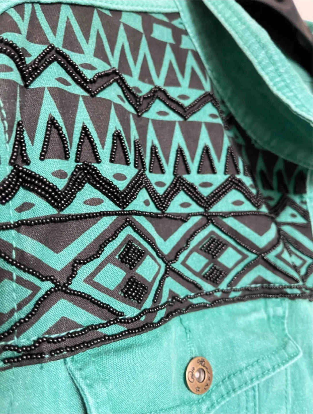 -Vintage denim jacket with beaded details