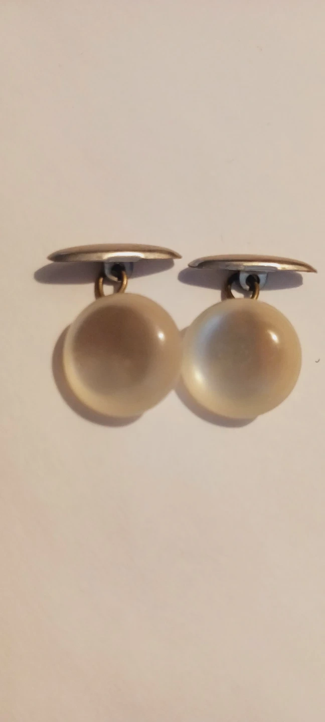 A pair of rare vintage white Moon Glow ๐ Lucite cufflinks with round, translucent balls on a metal finding. These add a classic touch to any dress shirt. Perfect for formal occasions or everyday wear. Excellent condition. 1" ร1". ALL MY PRICES ARE NEGOTIABLE !!