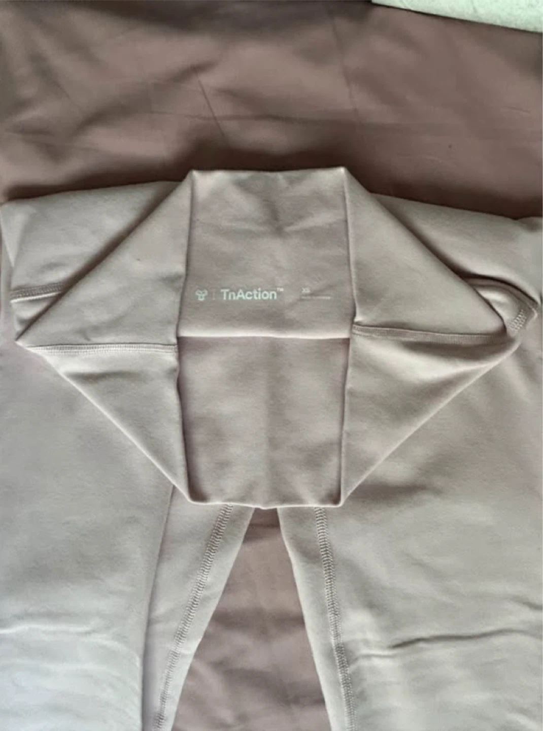 These are TnAction leggings, perfect for your next workout or casual wear. They're made from a stretchy, comfortable fabric for all-day wear. They offer a flattering fit and come in a versatile light beige colour. Great for hitting the gym or running errands!