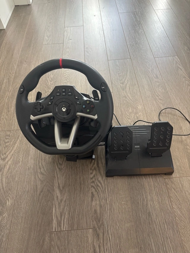 The Hori Racing Wheel Overdrive is compatible with Xbox One and Windows, and is in good used condition. This racing wheel provides an immersive gaming experience. It comes with responsive pedals and wheel-mounted controls, perfect for racing enthusiasts. Key Features: Xbox One and Windows compatible, Responsive foot pedals, Wheel-mounted controls. If this ad is still up, the wheel is still available.