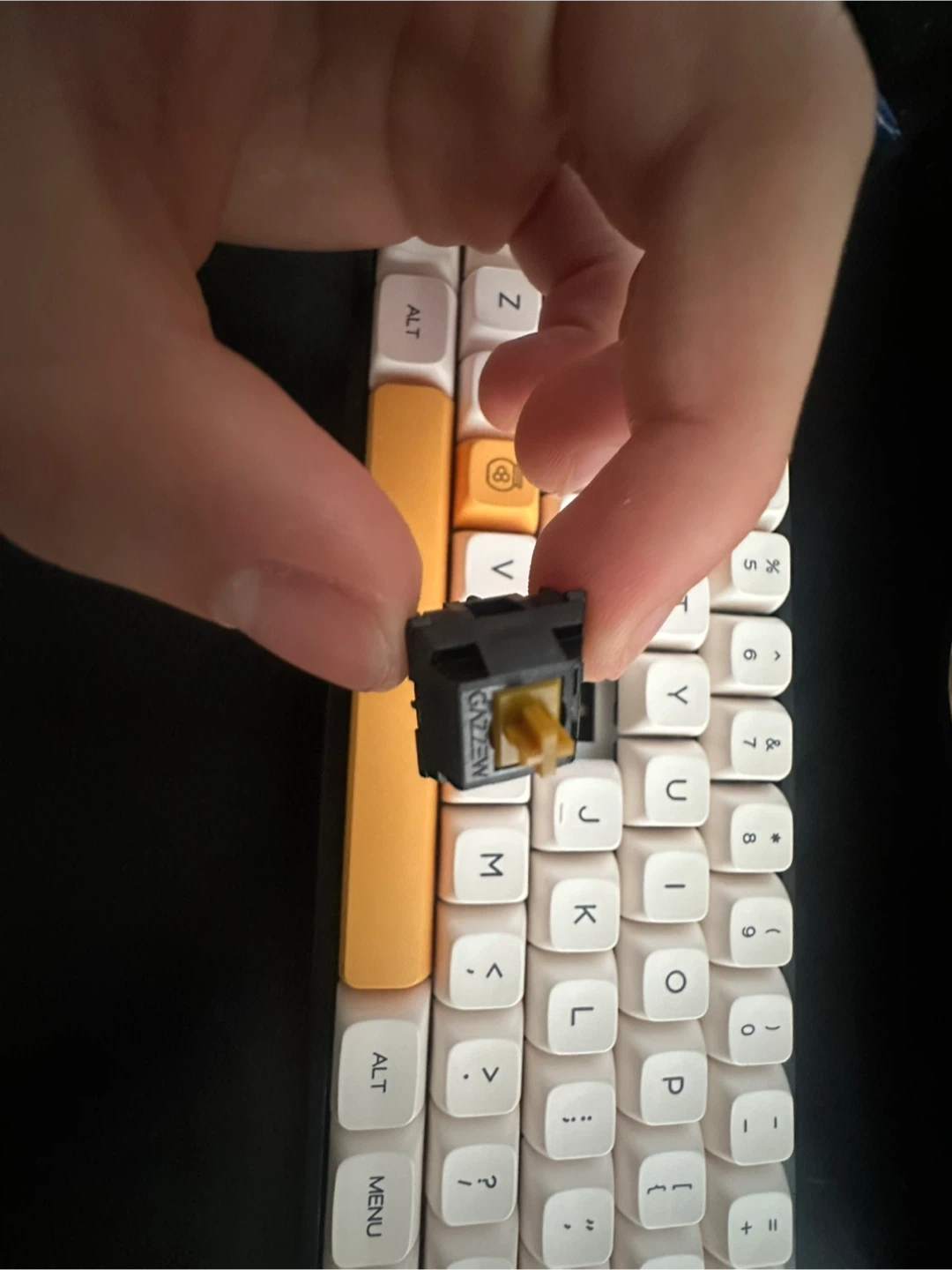 Comes with lubed linear boba u4t switches, AND navy kaih tactile switches.