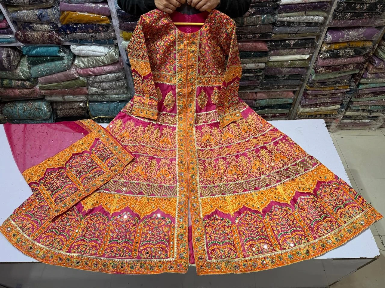 Four sided border net duptta