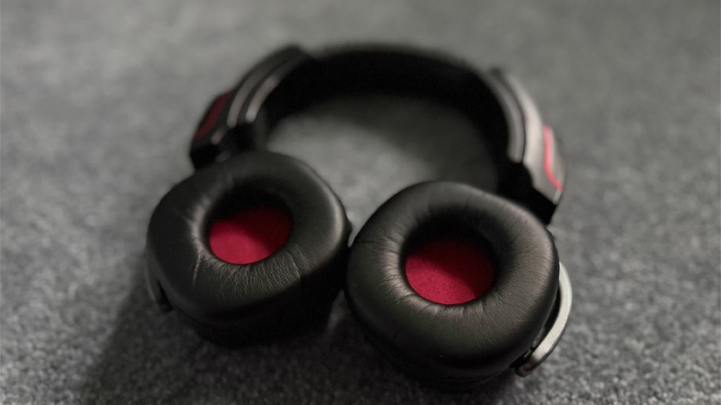 These Sony headphones offer effective noise cancelling. They're comfortable for long listening sessions. Black colour with red accents.