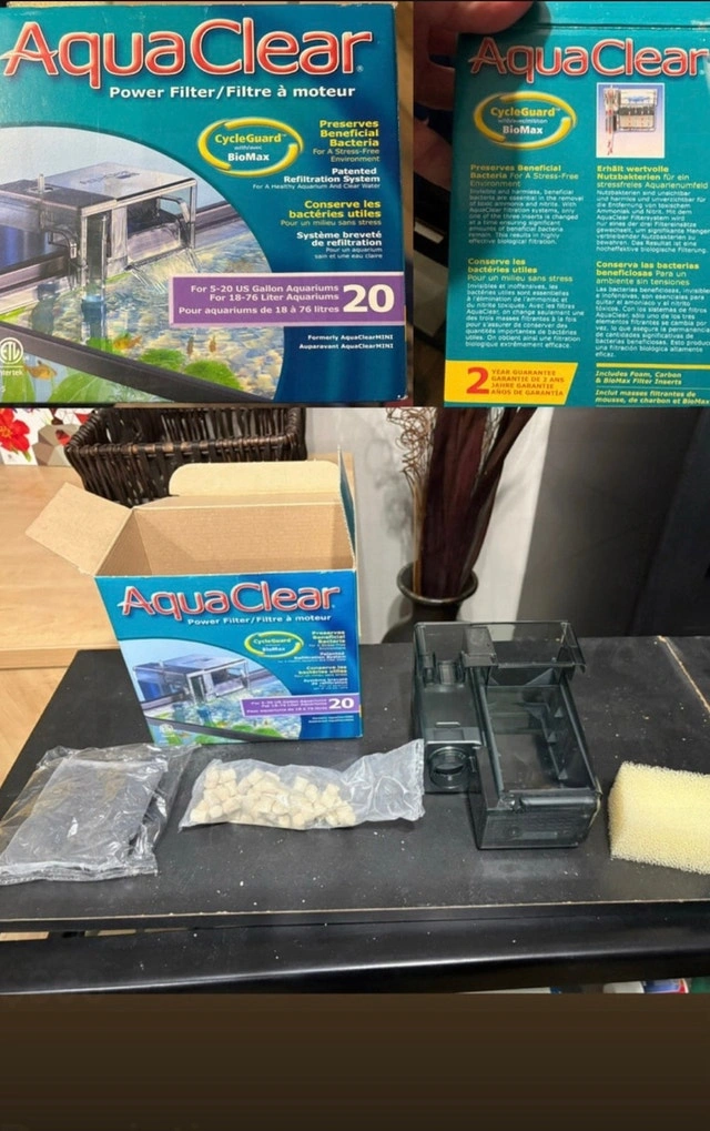 Selling a complete used 52-gallon fish tank setup, ready for a new home! Includes the tank with a decorative stand, gravel, an Aqua Clear 20 power filter, an Aqua-Tech filter for 20-50 gallon tanks, a heater, and several decorative rock and coral formations. Also included are a background, nets, 2 lights, and some water treatment solutions to get you started. Please note this setup has been used and shows signs of wear. It's perfect for someone looking to get into fishkeeping without buying everything brand new! Asking $600.00, open to negotiation. Tank size is 52 gallons. If the ad is up, the tank is still available.