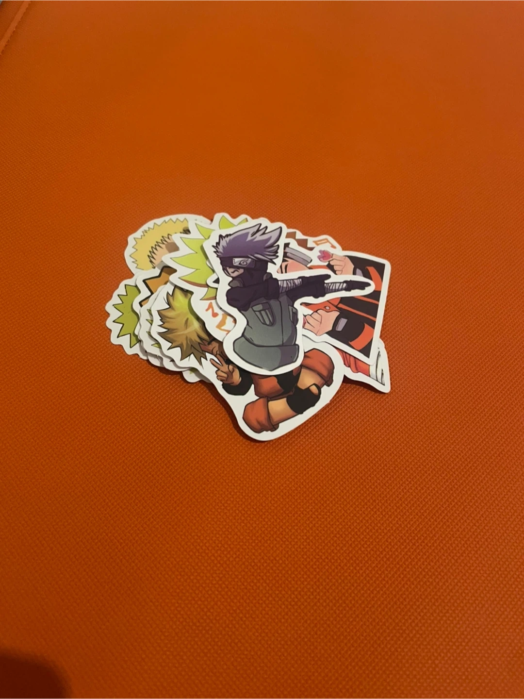 A collection of 10 vinyl stickers featuring popular characters from the Naruto anime series, like Naruto Uzumaki and Kakashi Hatake. These stickers are durable and waterproof. Perfect for decorating laptops, water bottles, or notebooks!