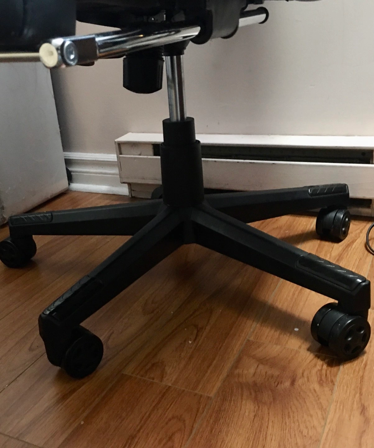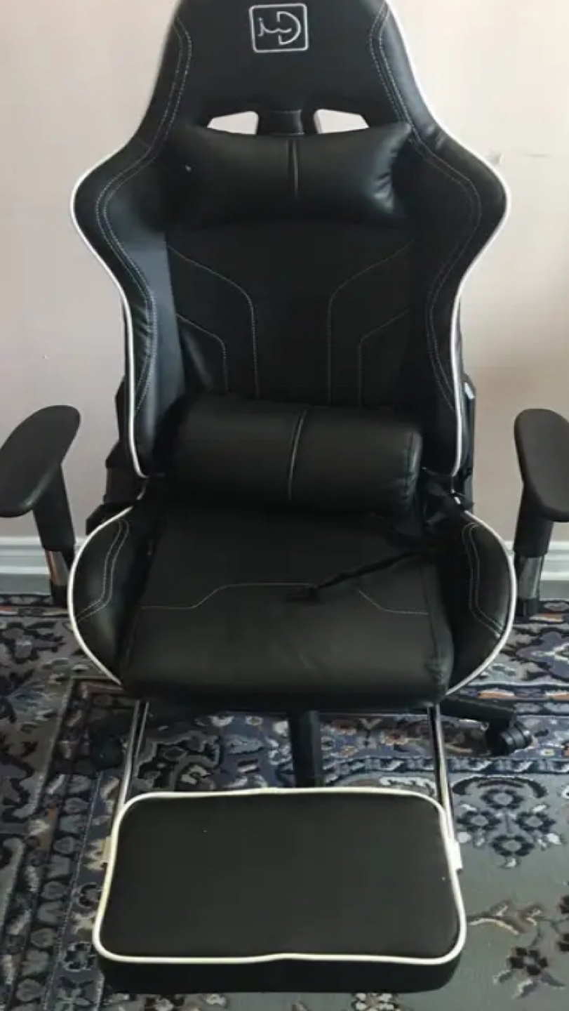 Almost perfect condition with no scratches. It has a back support and a headrest with an adjustable arms rest. I barely used it for six months I don’t need it anymore. The only problem is that the chair's height isn’t adjustable. it is only pick up