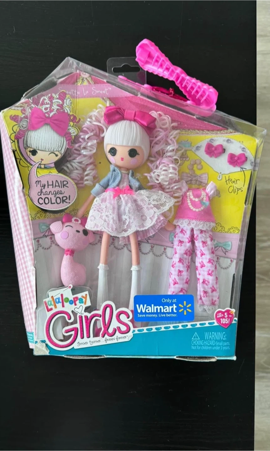 This is a rare Walmart exclusive Lalaloopsy Girls doll is named Suzette La Sweet. Included are a change of clothes and hair clips for styling.