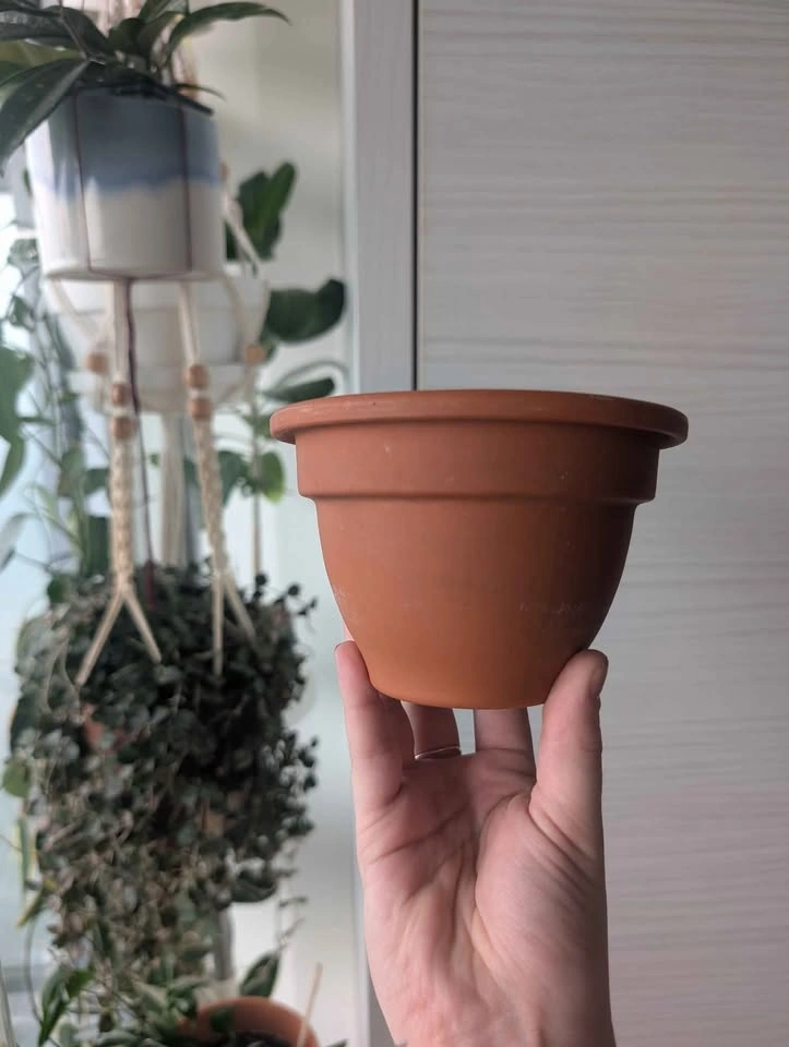 - Pretty-shaped 4.5" Terra Cotta pot with drainage hole. $5