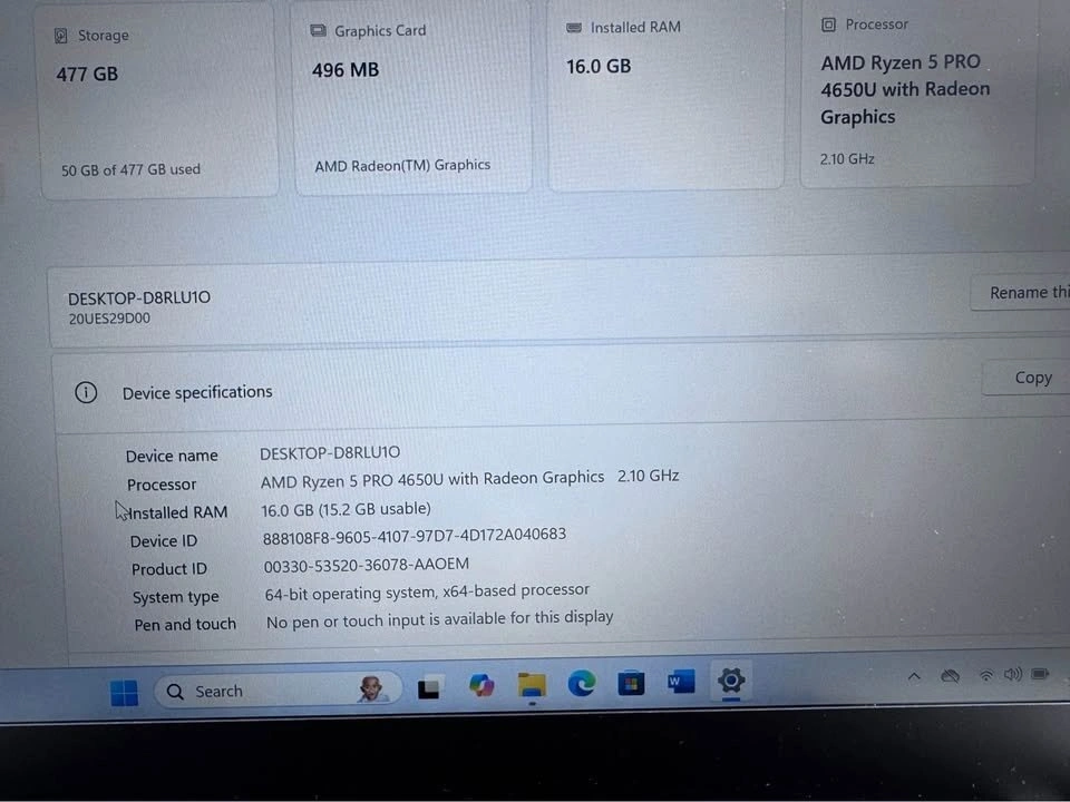 Lenovo ThinkPad T14 laptop with AMD Ryzen 5 Pro 4650U processor (6 cores/12 threads) running at 2.10Ghz. It has 16GB DDR4 RAM (8GB+8GB) and a 512GB NVME SSD. The battery has 85-90% health, offering about 4-5 hours of use. Features a 14-inch Full HD display and 512MB Radeon graphics. Comes with Windows 11 Pro and MS Office 2024 pre-installed. Includes webcam, WiFi 6, Bluetooth 5, USB Type-C, USB 3, HDMI, card reader, and audio jack. Condition is Grade A/Mint. Comes with an original Type-C Lenovo charger. We offer a 90-day exchange warranty. Payment accepted via Cash, Credit, or Debit. Invoice available upon request. View and pick up in Surrey or Maple Ridge.