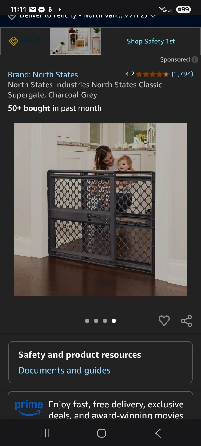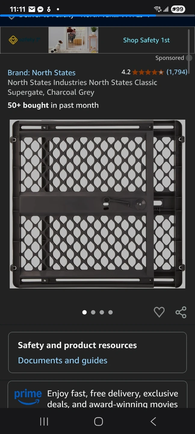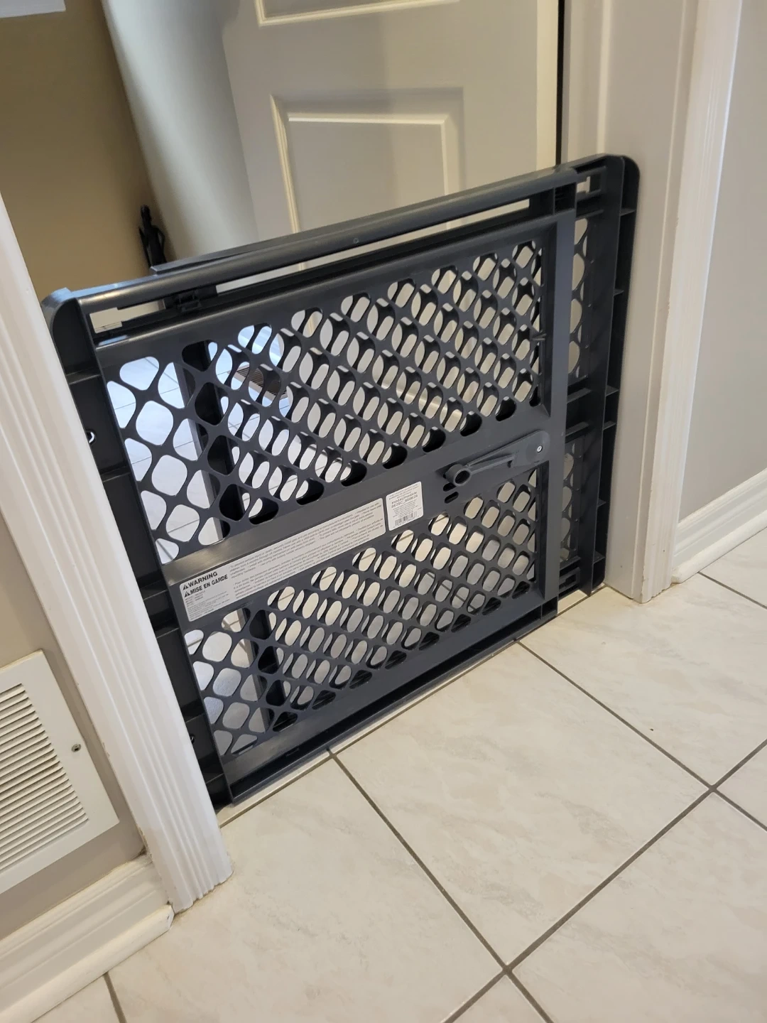 This North States Industries Supergate is designed for safety and convenience. It's charcoal grey and measures 106.68cm wide by 66.04cm high. It's perfect for keeping little ones safe and contained.