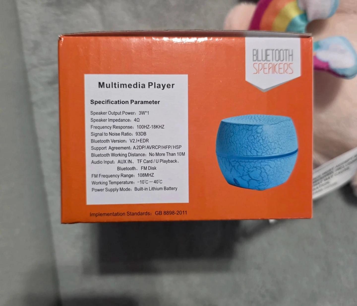 This is a Sansui A36 Bluetooth speaker in blue. It's a portable multimedia player with 3W speaker output. Supports FM, AUX IN, TF Card/USB playback, and Bluetooth connectivity. Brand new in box.