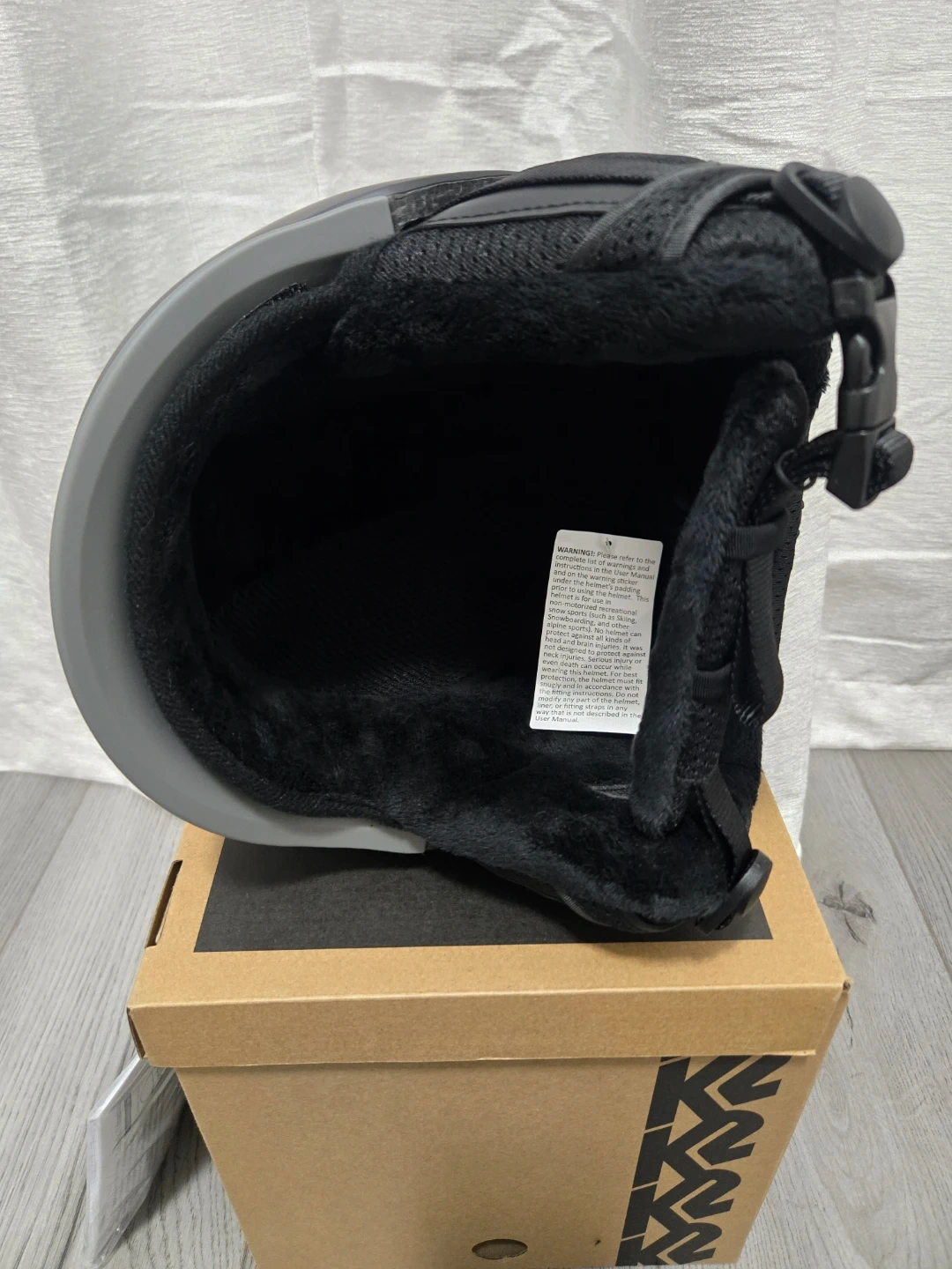 This K2 Rival ski helmet is black and size medium. It includes the original box and user manual. This helmet is designed for winter sports protection.
