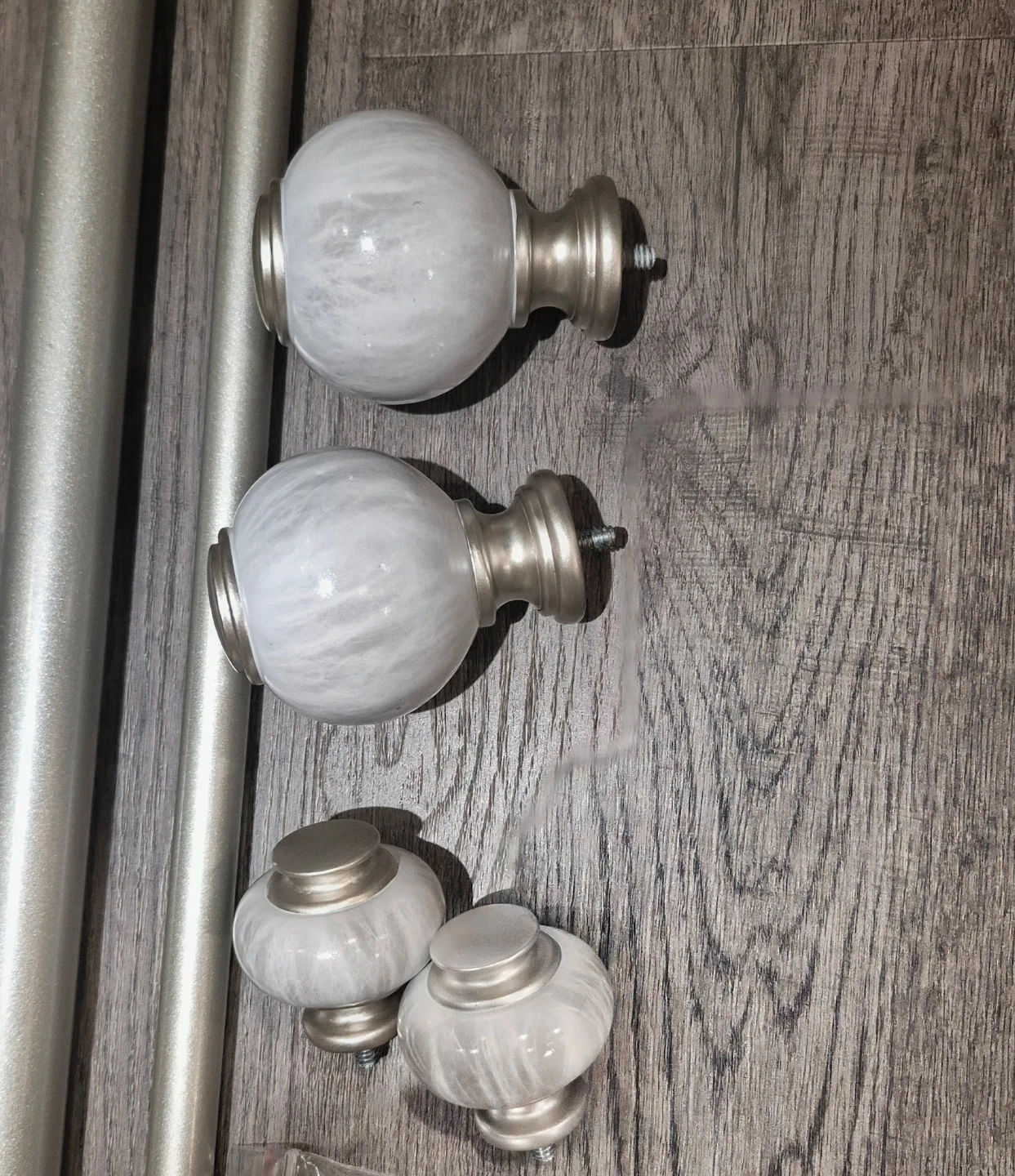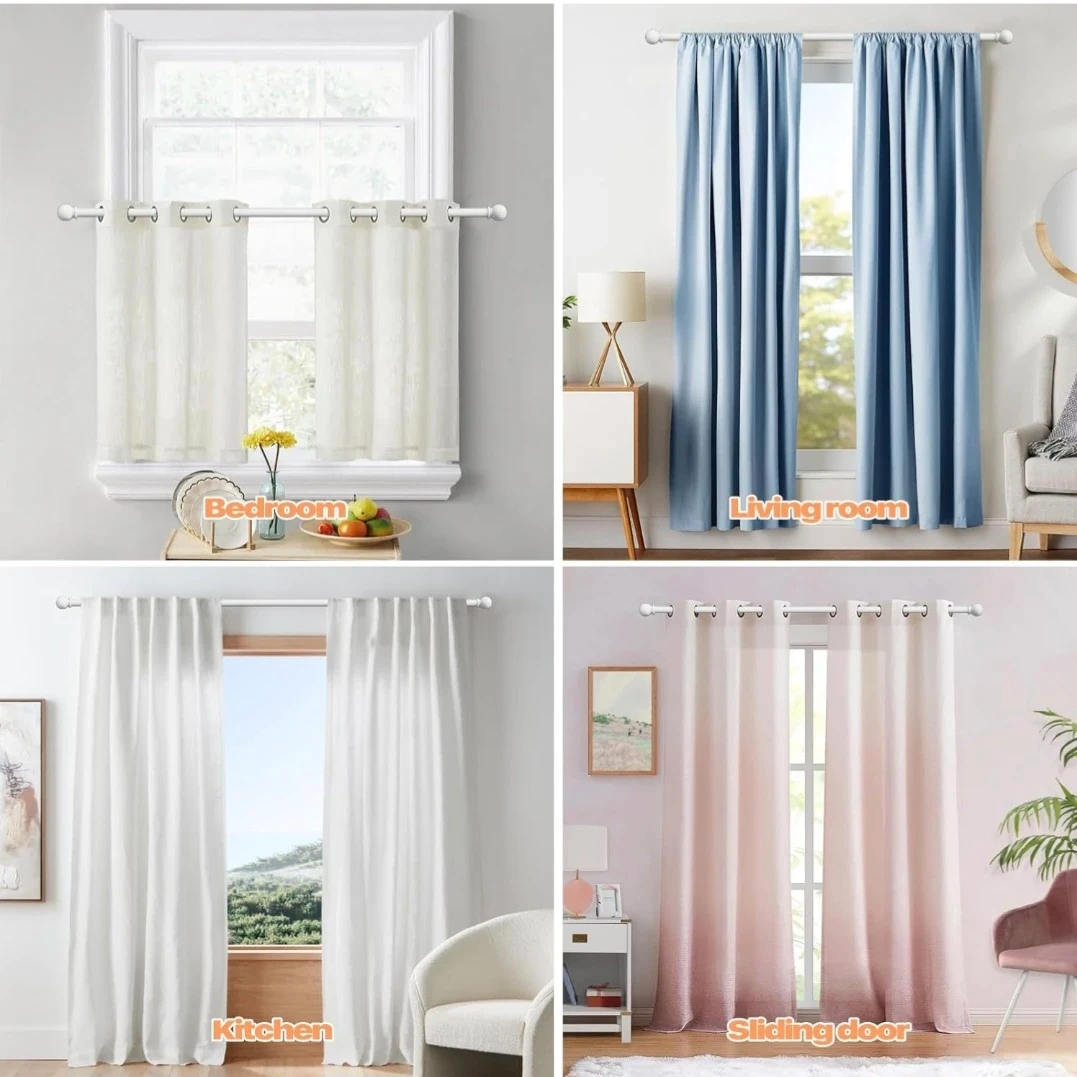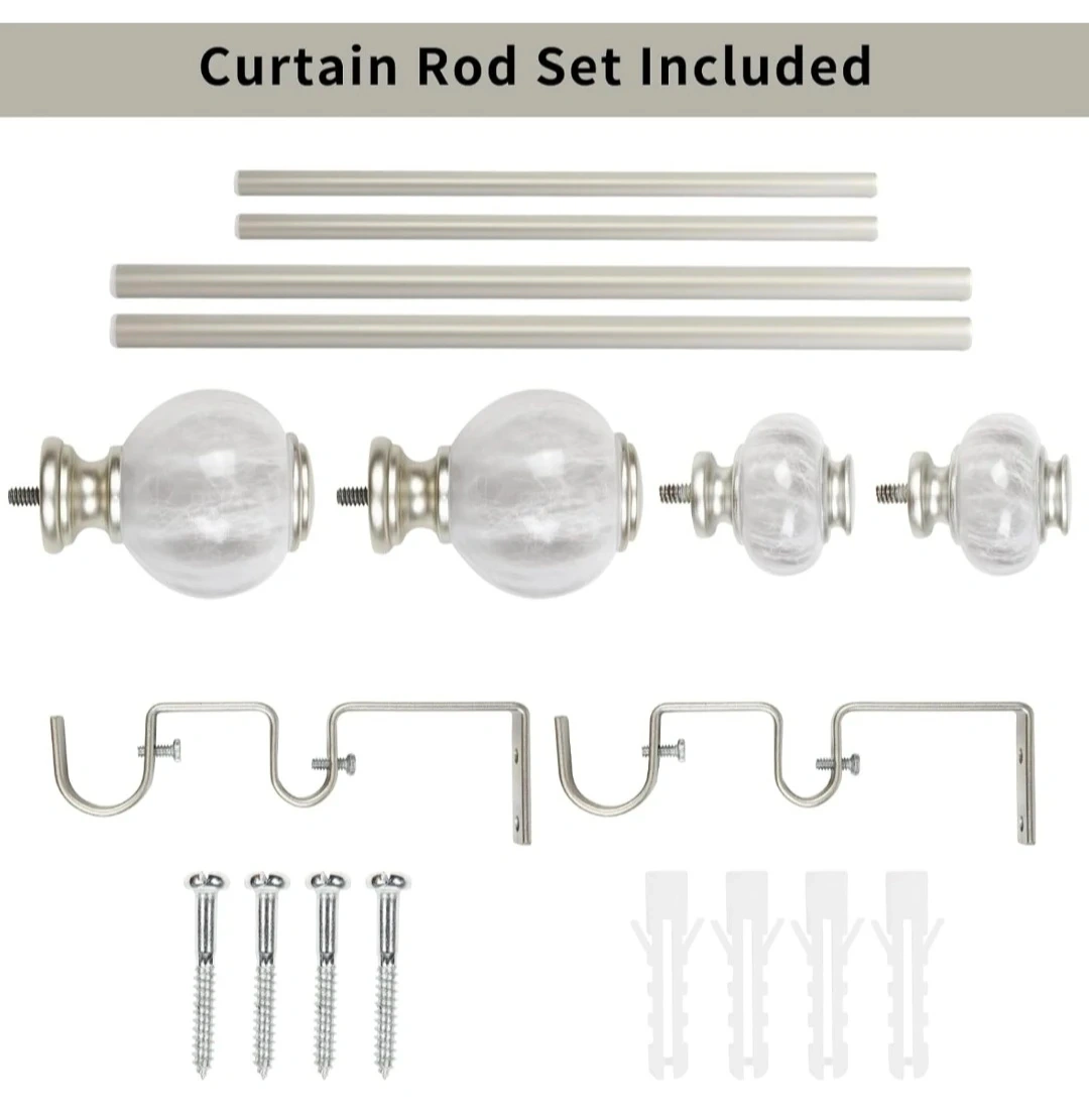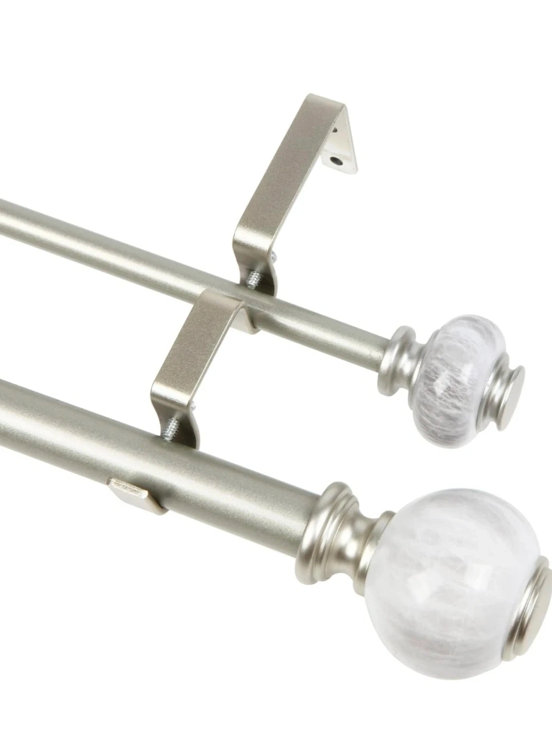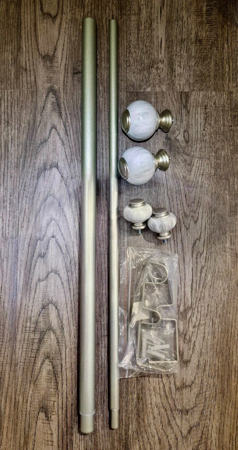 Adjustable Double Curtain Rods Set. New. 28"-48", 1" & 5/8" Diameter rods. It includes all hardware. This is great for layering curtains to control light and privacy.