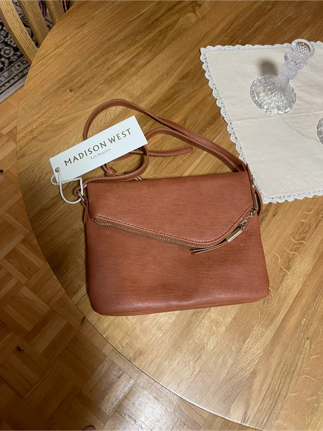 Selling a cute Madison West crossbody bag! It's a lovely brown colour and in great condition. Perfect for everyday use or a night out. It features a zipper closure and an adjustable strap.