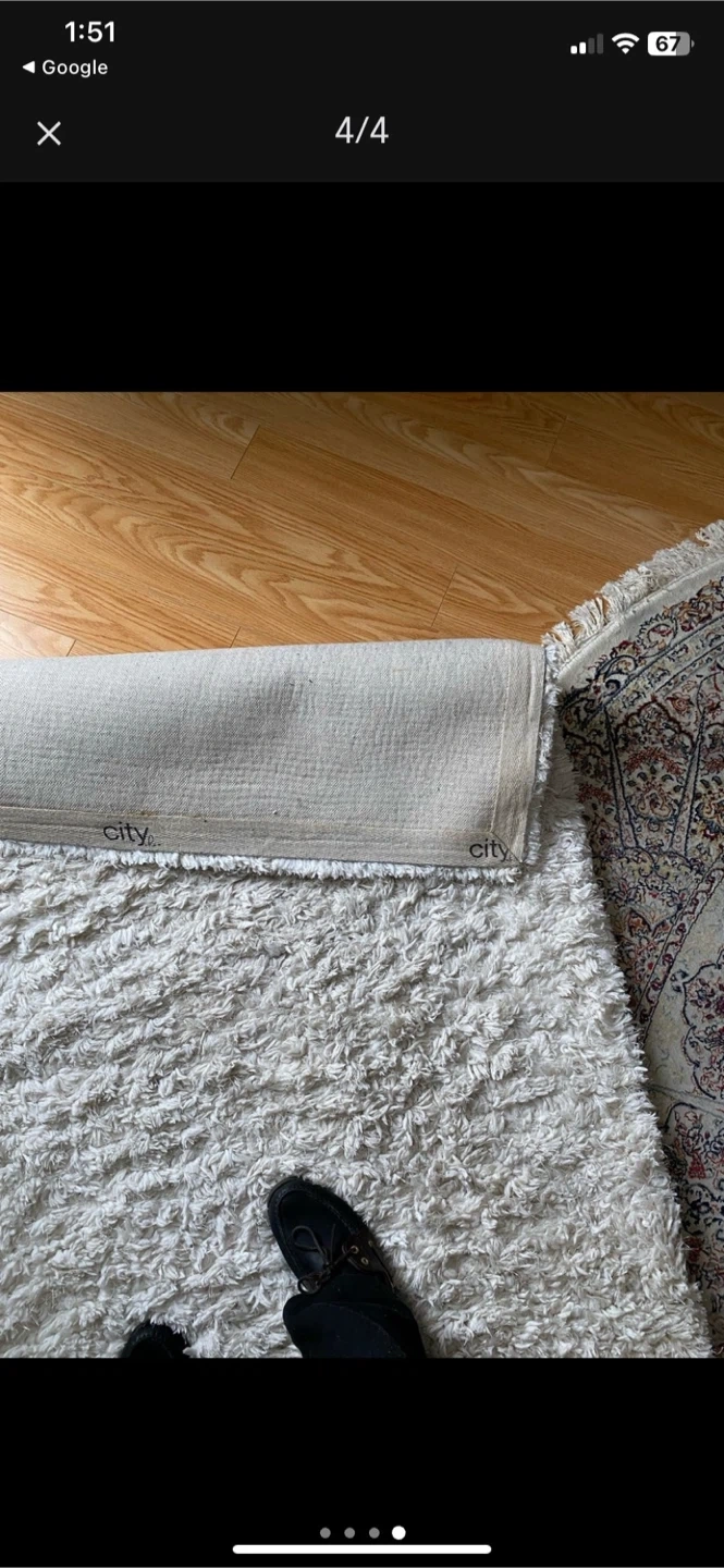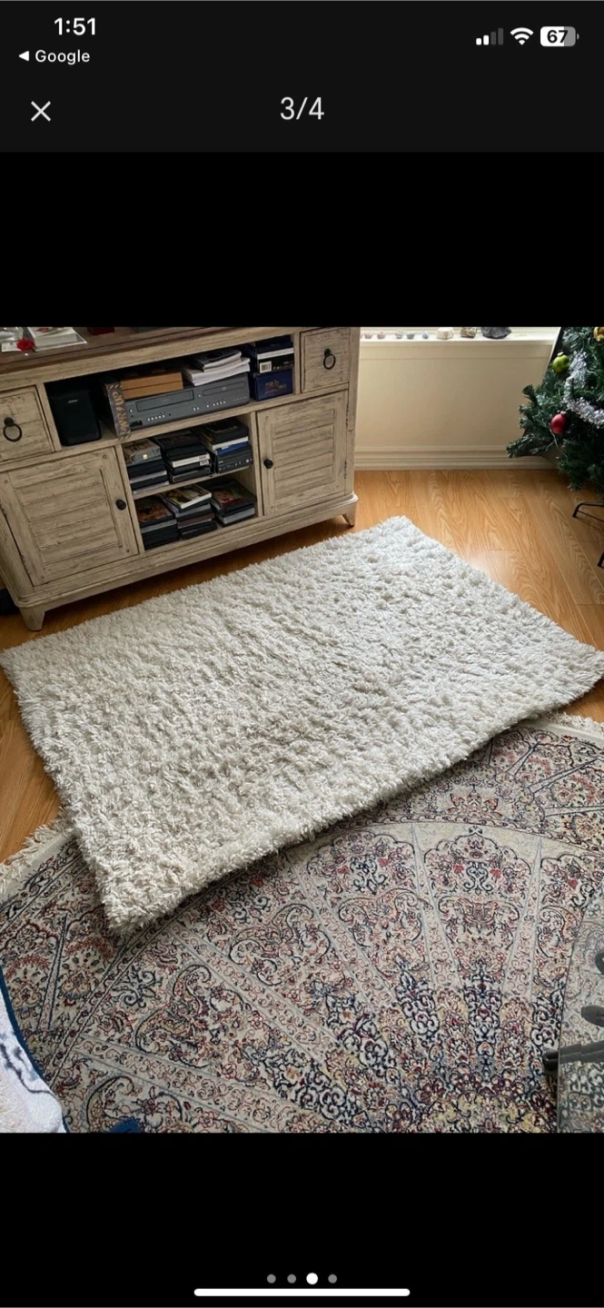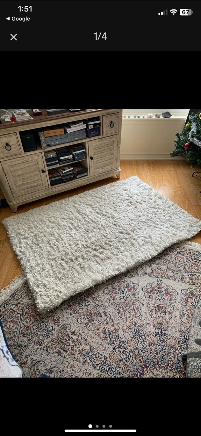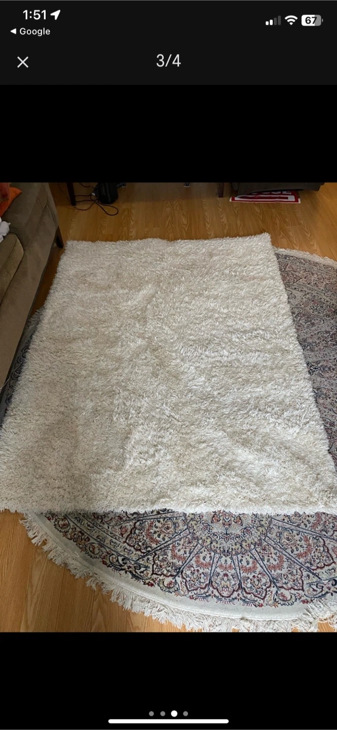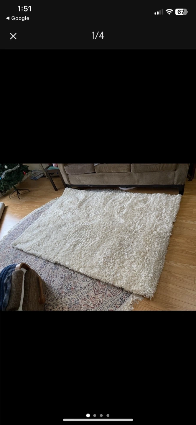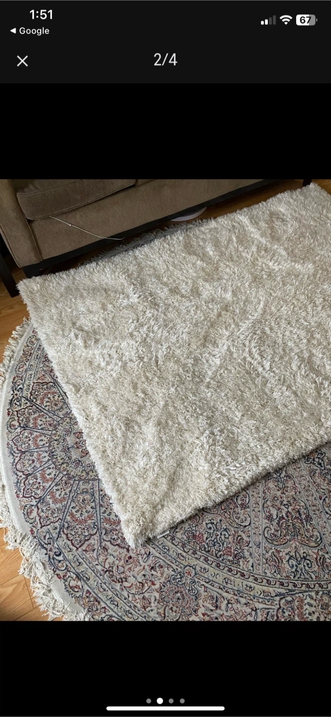 White shag area rug. Soft and plush texture. Adds warmth and comfort to any room. Was used in staging for home sales. 1 4 x 6 and 1- 5 x 7 - no pets or smoke. Great condition. Your choice