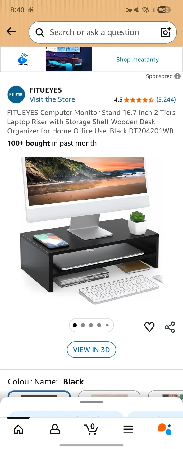 FITUEYES monitor stand with two tiers for organizing your desk. It's black and made of wood. Provides extra storage for your computer setup.